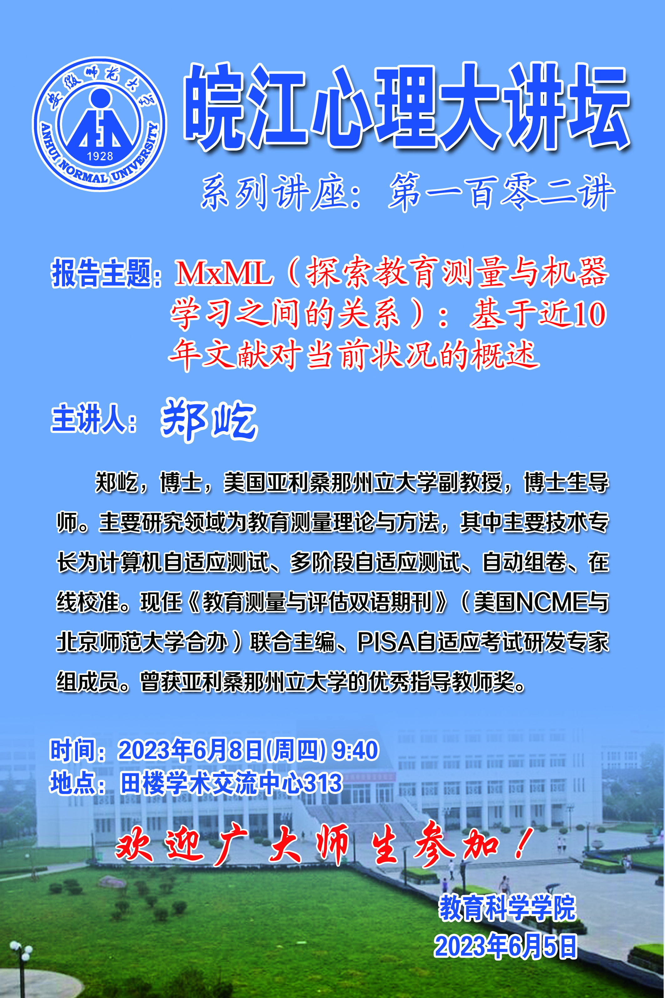 【皖江心理大讲坛第一百零二讲】美国亚利桑那州立大学副教授:MxML(探索教育测量与机器学习之间的关系):基于近10年文献对当前状况的概述