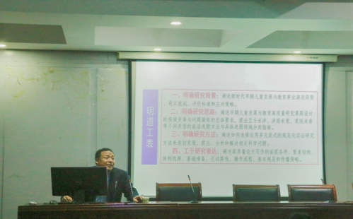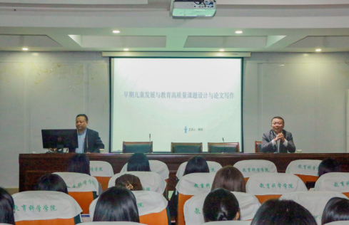 为加强学前教育专业研究生对高质量课题设计和论文写作的了解,更好地引导同学们进行高质量论文写作,学院学前教育知行大讲坛特邀陕西学前师范托育事业研究副院长熊伟教授作了题为《早期儿童发展与教育高质量课题设计与论文写作》的学术讲座。本次讲座由副院长张更立教授主持,学前教育专业全体研究生参加。