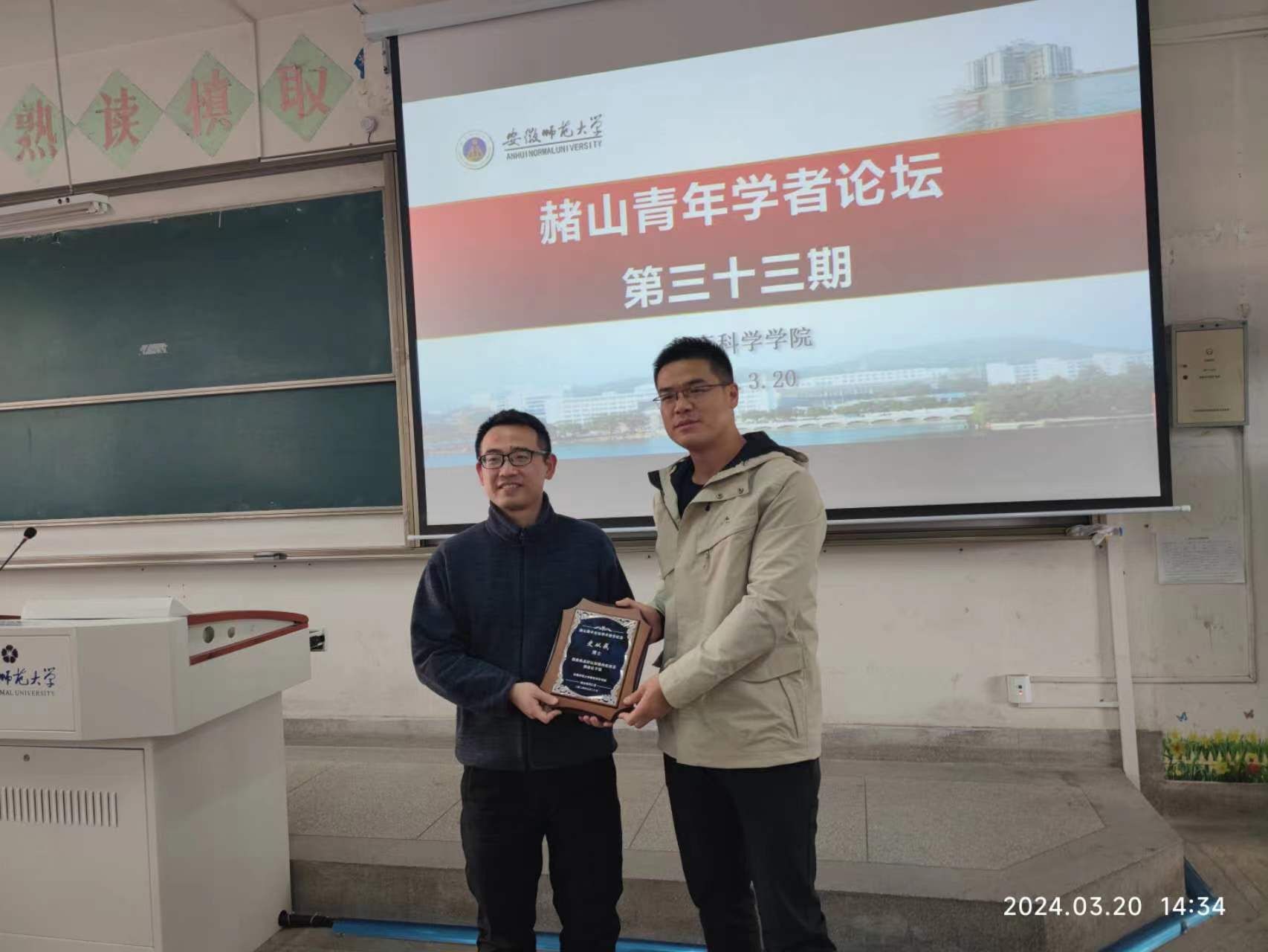 3月20日下午,赭山青年学者论坛第三十三期在田楼8103教室准时开讲。史从戎博士受邀为在场师生带来了主题为《健康焦虑的认知偏向机制及网络化干预》的学术讲座。副院长吴文涛、学院部分教师、心理学与心理健康教育等专业研究生到场学习。