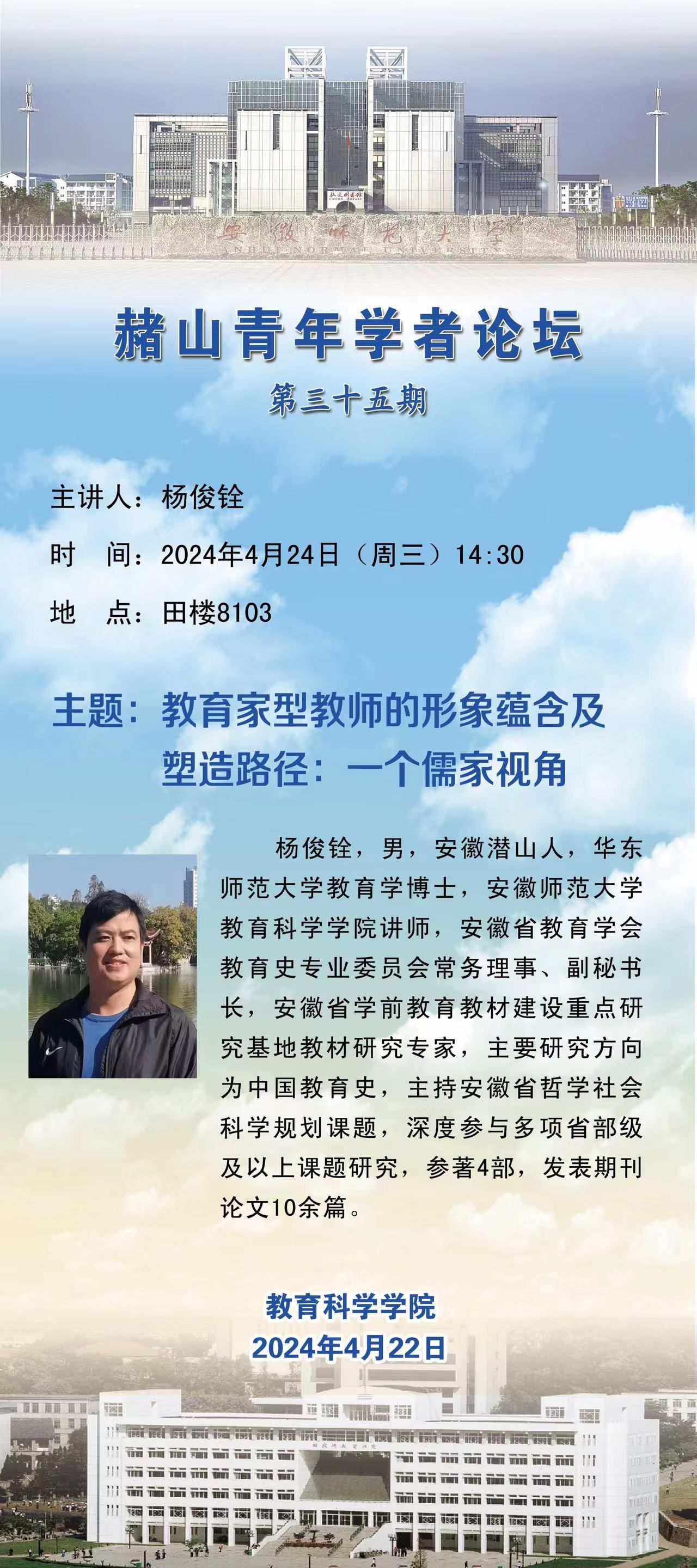 【学术预告】赭山青年学者论坛第三十五期——杨俊铨:教育家型教师的形象蕴含及塑造路径:一个儒家视角