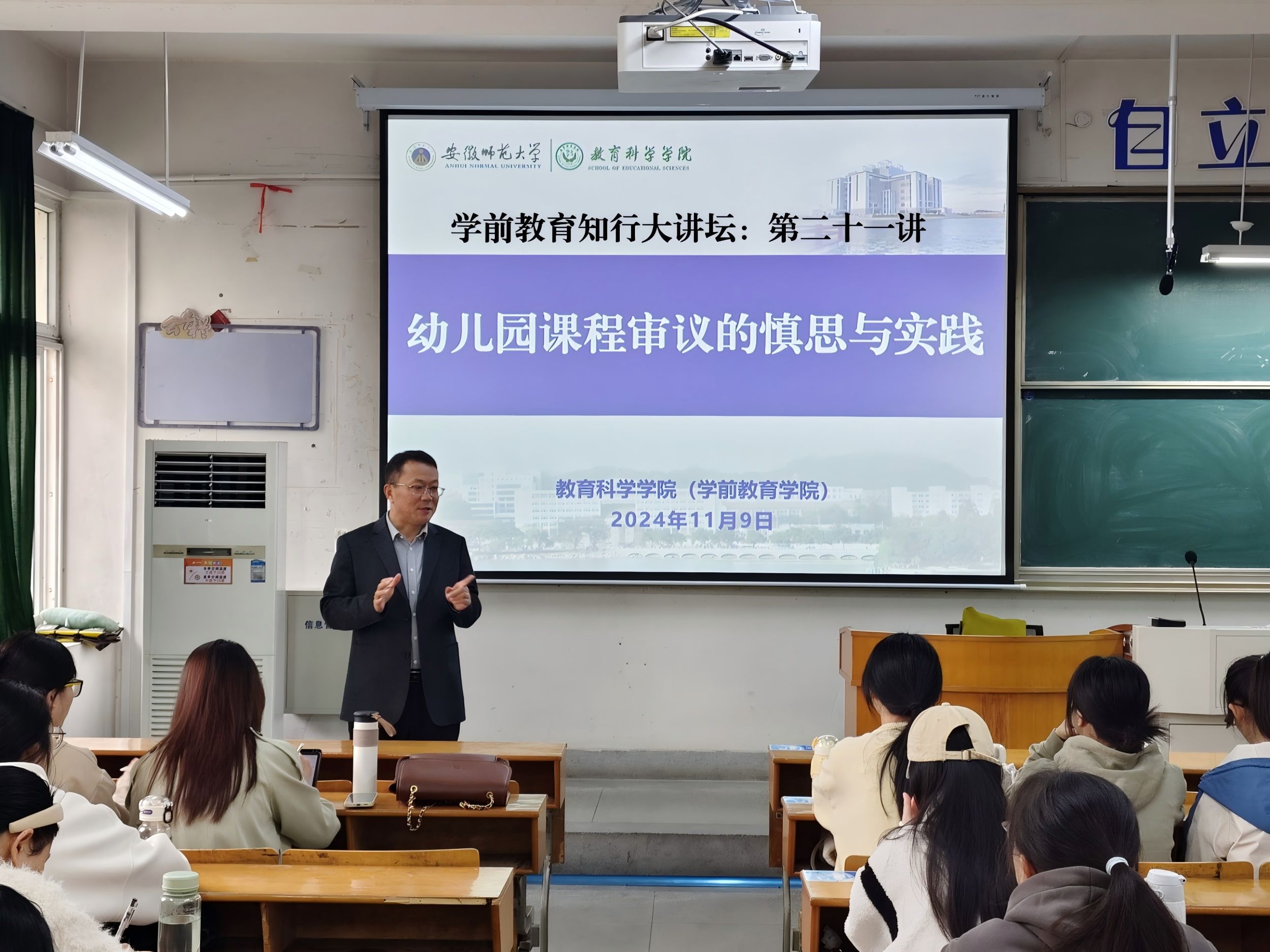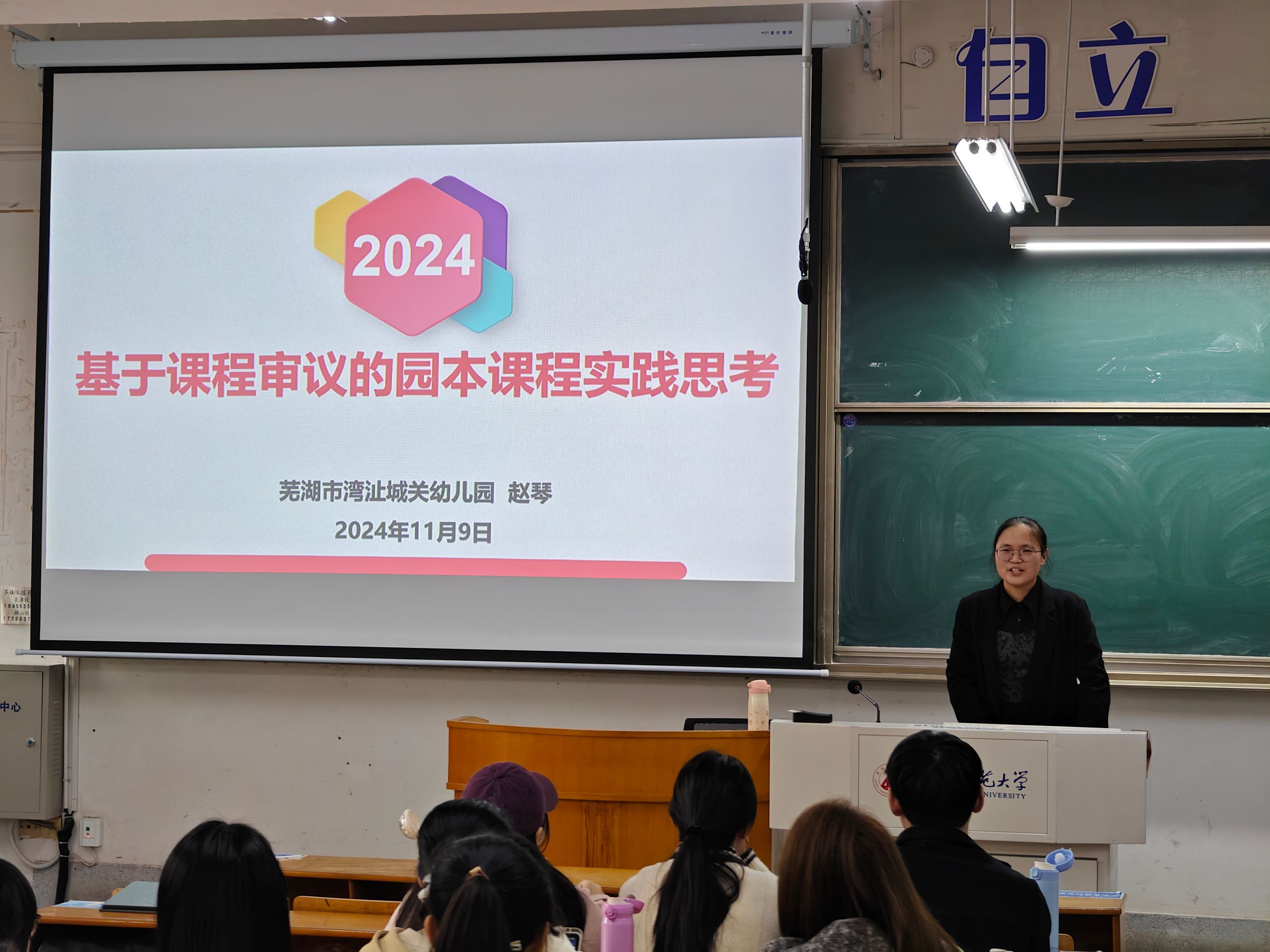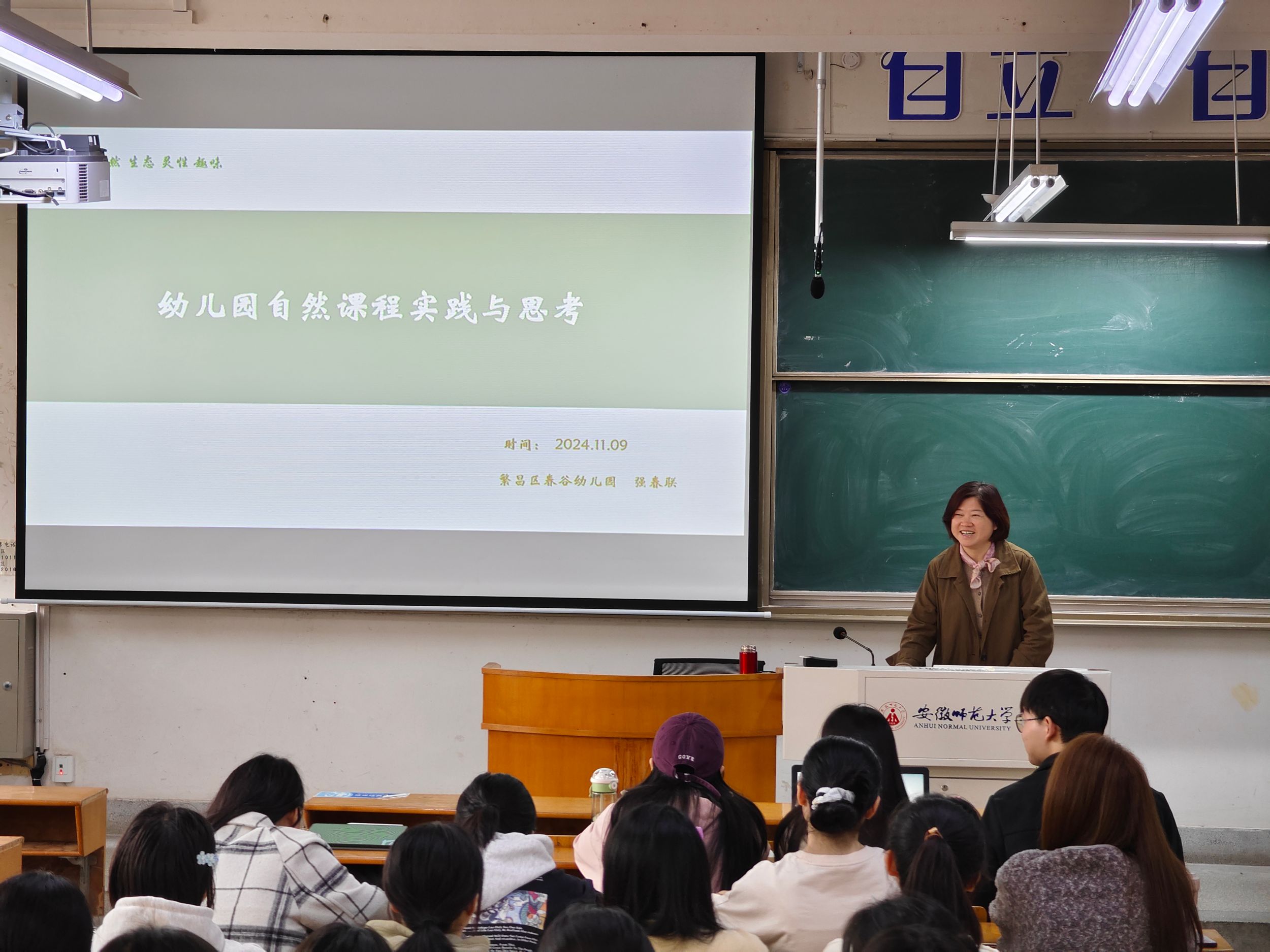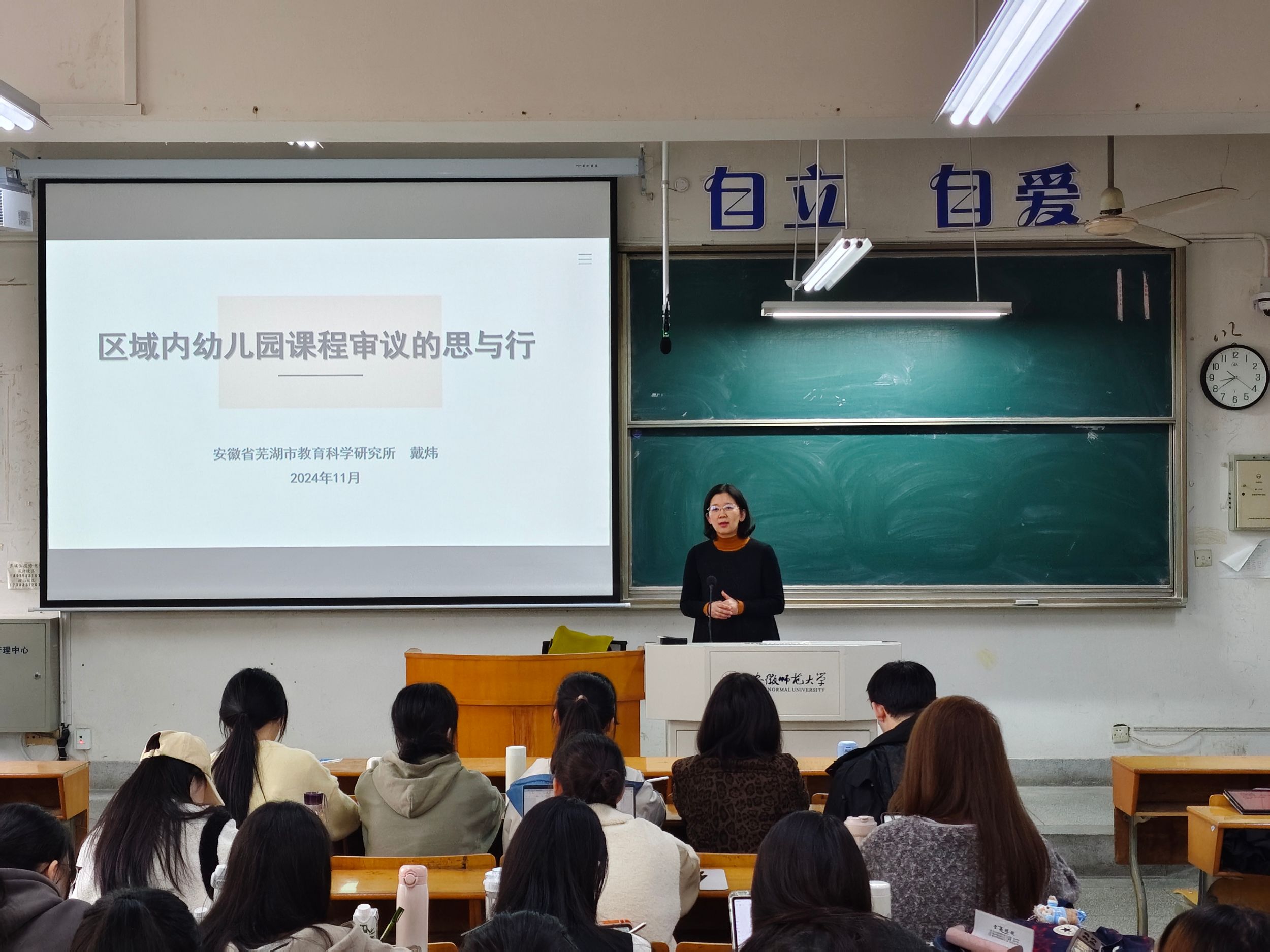 2024年11月9日,学前教育知行大讲坛第二十一讲在田楼8210教室举行。本次讲座邀请芜湖市教育科学研究所副所长、硕士生导师戴炜,繁昌区春谷幼儿园园长强春联、湾沚城关幼儿园园长赵琴,围绕《幼儿园课程审议的慎思与实践》为我院师生做了三讲专题讲座。讲座由365英国上市官网(学前教育学院)副院长张更立教授主持,2023级、2024级学前教育研究生及部分本科生到场学习。