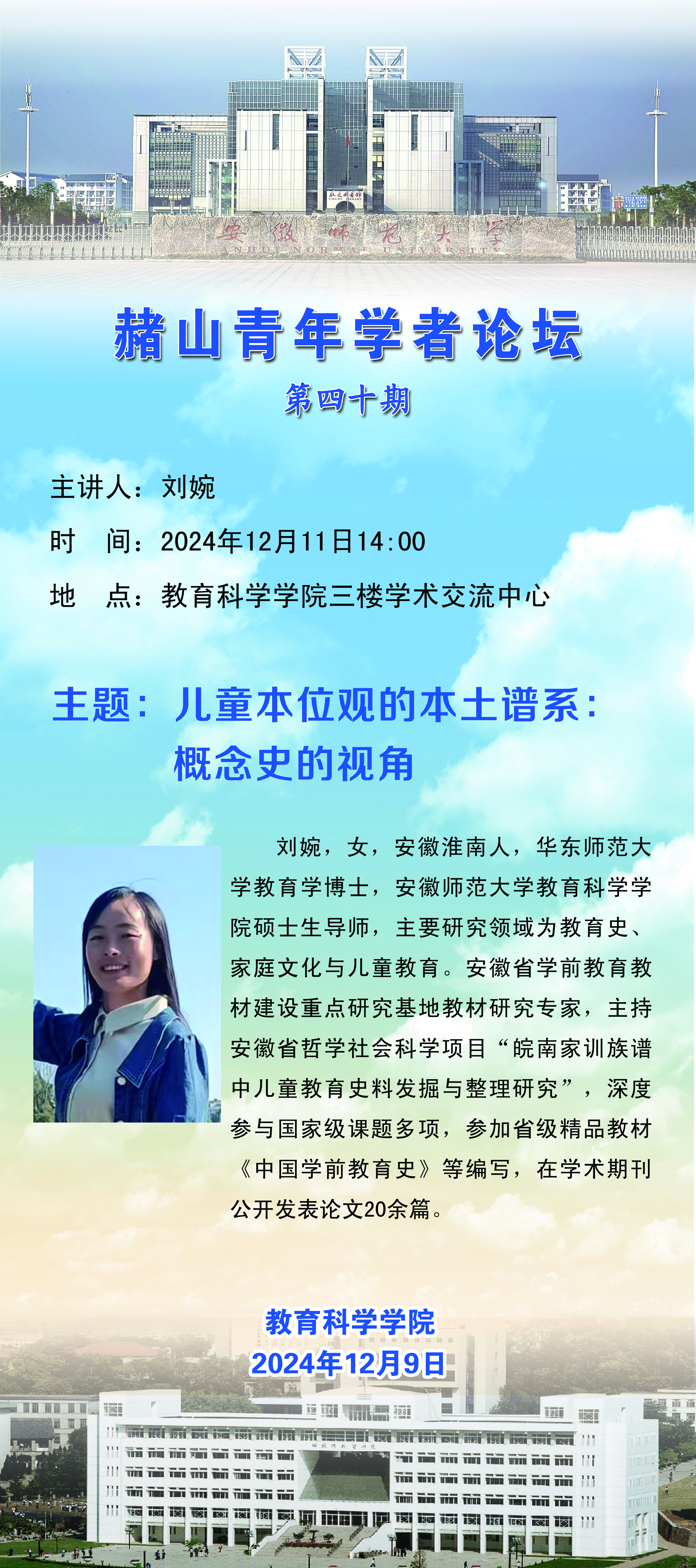 【学术预告】赭山青年学者论坛第四十期——刘婉:儿童本位观的本土谱系
