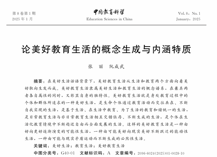 张丽、阮成武:论美好教育生活的概念生成与内涵特质