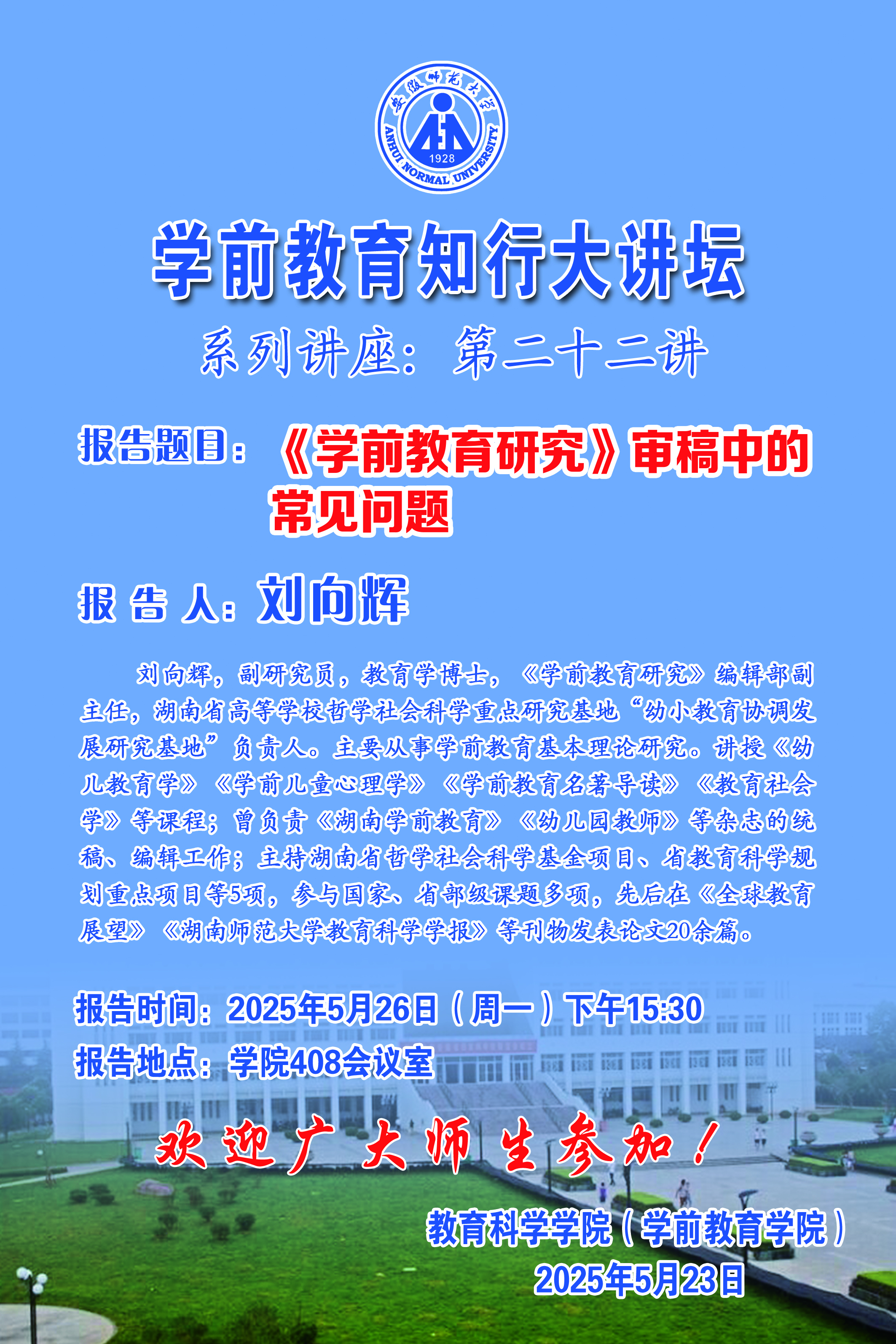 【学术预告】学前教育知行大讲坛第二十二讲——刘向辉:《学前教育研究》审稿中的常见问题