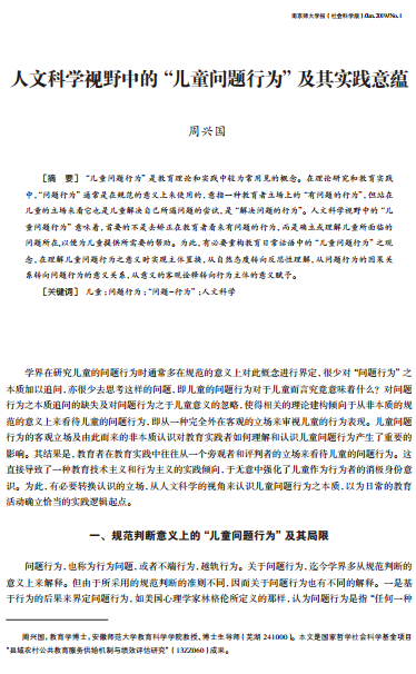 周兴国:人文科学视野中的“儿童问题行为”及其实践意蕴