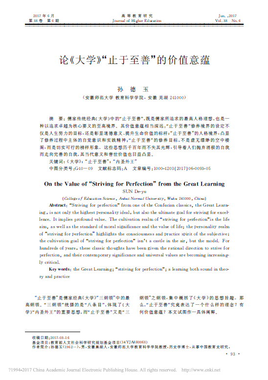 孙德玉:论《大学》“止于至善”的价值意蕴