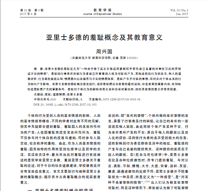 周兴国:亚里士多德的羞耻概念及其教育意义