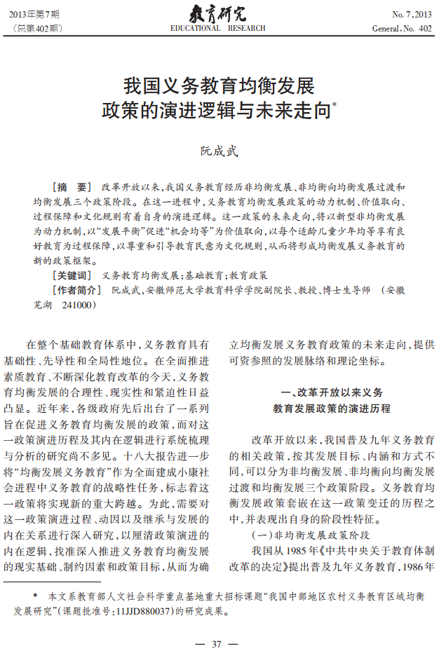阮成武:我国义务教育均衡发展政策的演进逻辑与未来走向