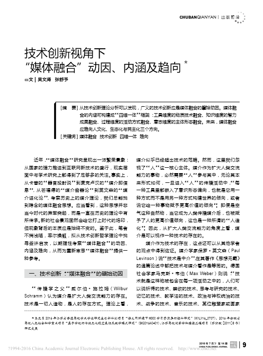 吴文涛、张舒予:技术创新视角下 “媒体融合”动因、内涵及趋向