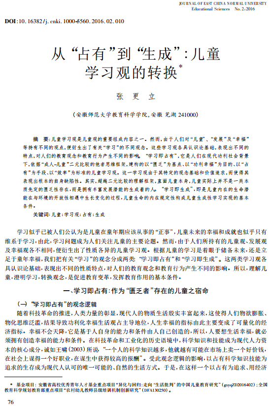 张更立:从“ 占有”到“ 生成”: 儿童学习观的转换