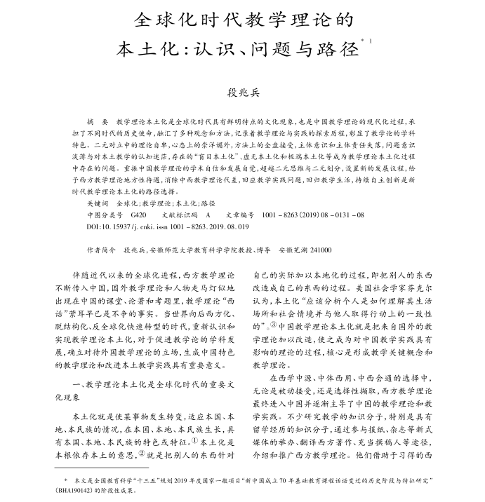 段兆兵:全球化时代教学理论的本土化:认识、问题与路径