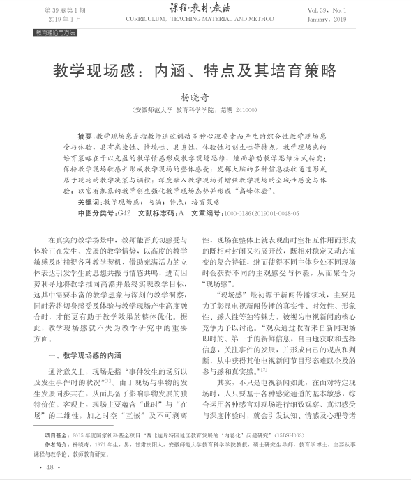 杨晓奇:教学现场感:内涵、特点及其培育策略