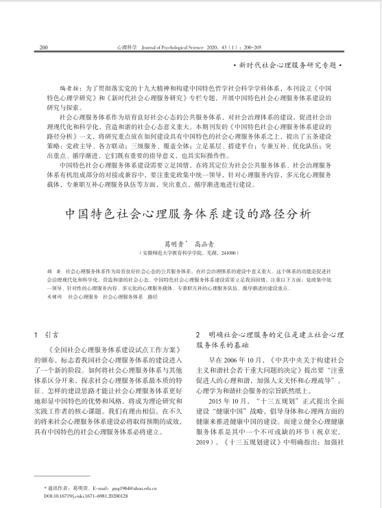 葛明贵,高函青:中国特色社会心理服务体系建设的路径分析