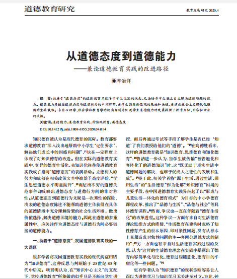 辛治洋:从道德态度到道德能力——兼论道德教育实践的改进路径