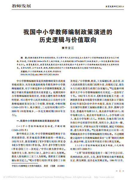 【教师科研】李宜江:我国中小学教师编制政策演进的历史逻辑与价值取向