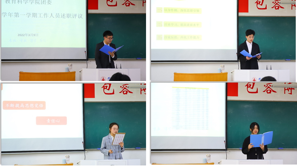 教科院团委及学生会积极响应学校号召,充分发挥自主创新意识,努力构建积极向上的团队氛围,致力于为教科学子提供更加优质的服务。本次述职会总结了团委及学生会各部门的工作经验,提升了学生工作者的工作热情,改进了工作方法,为新学期指明了新方向。