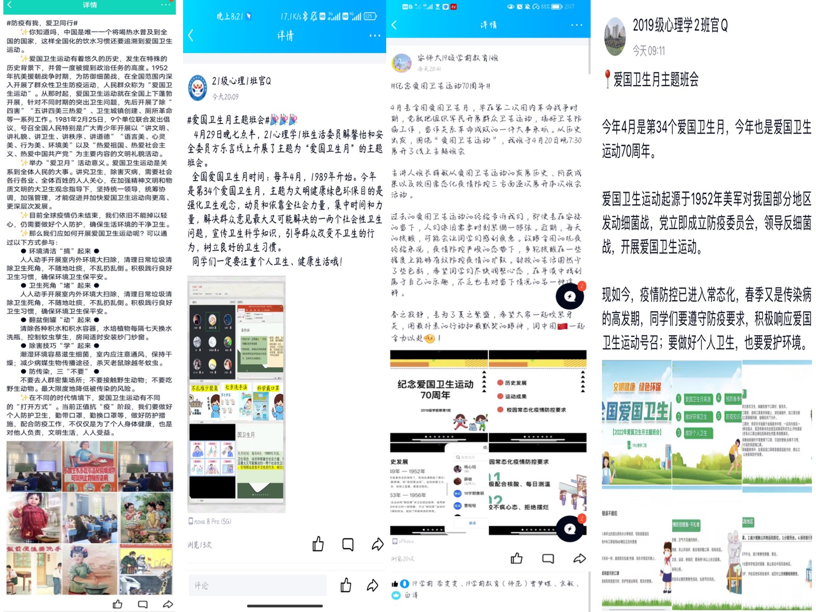 为提高教科学子的卫生安全意识,增强同学们的卫生理念,教科院各班结合“爱国卫生月”举办主题班会,对学生进行安全卫生教育,学习安全卫生知识。例如,普及如何预防各种传染病及病毒的相关知识,讲解正确的洗手步骤,如何增强身体防御机制等,科普知识的传播是同学们卫生理念提高的基础。