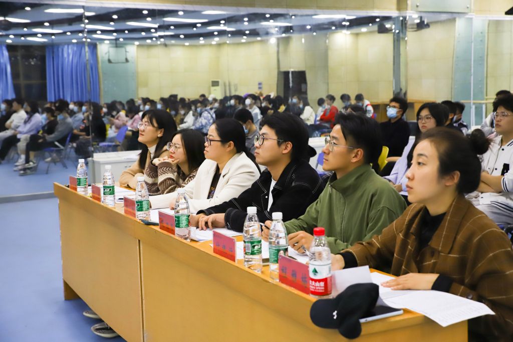 2022年10月21日晚,365英国上市官网于食堂四楼多功能报告厅开展“优秀班集体”评选活动。院党委副书记杜凤、院团委书记张理强、副书记付银行、2020级辅导员蔡文、2021级辅导员赵茜、2022级辅导员程雅楠以及各班学生代表参加。