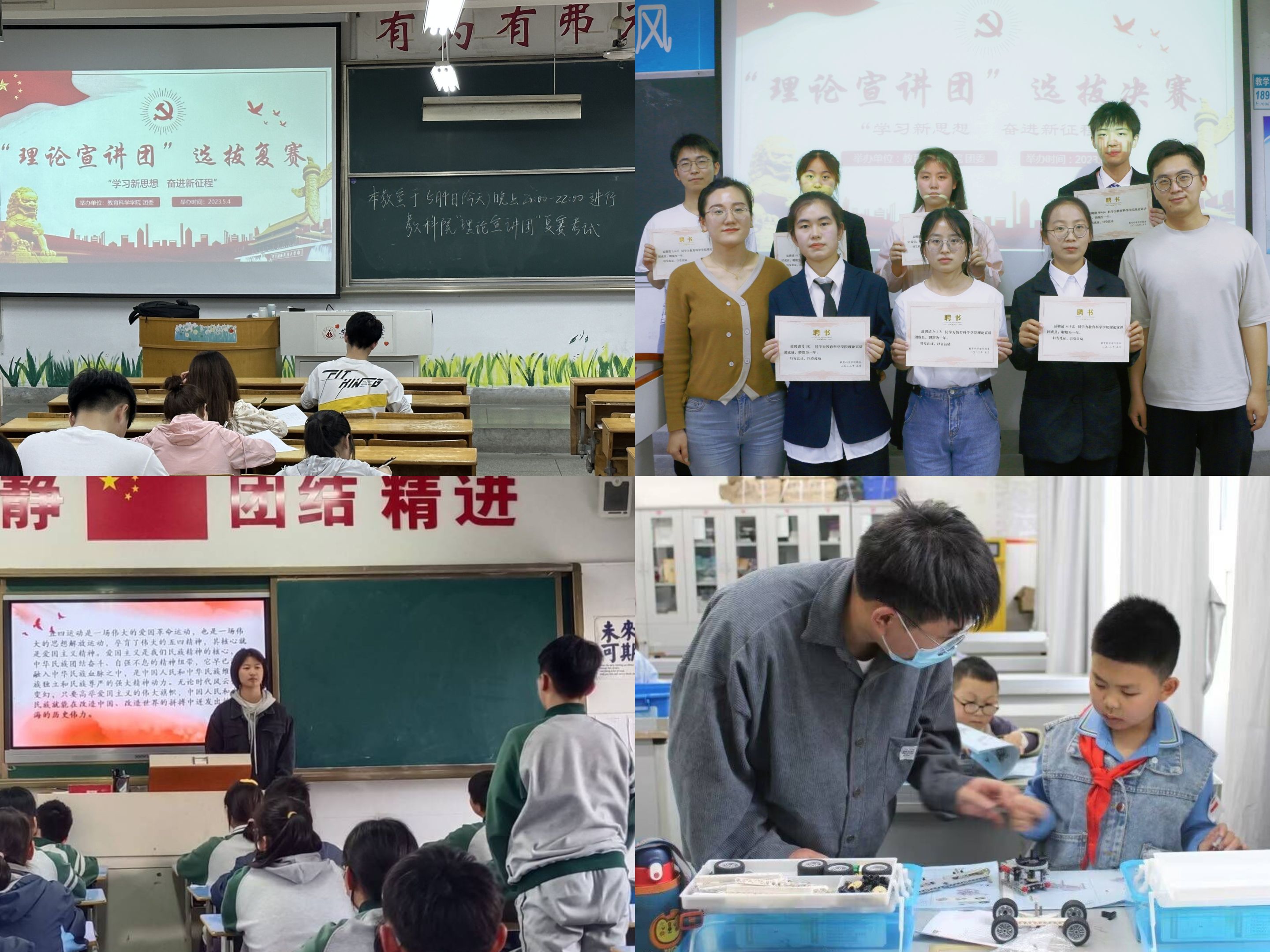 青春之我投身实践,特色活动发扬精神。学院积极响应学校号召,以举办“学习新思想、奋进新征程”演讲比赛和知识竞赛为抓手组建理论宣讲团,深入开展学习贯彻习近平新时代中国特色社会主义思想主题教育。同时,学院各社团值五四之际创新志愿活动形式,积极弘扬红色精神。大学生心理研究学会社团心灵护航志愿者团队将“五四精神”融入心理课堂,前往芜湖市第二十八中学进行理论宣讲;青芒创客社团在芜湖市南关小学开展实践课程,带领同学们拼装红船模型,学习五四精神、红船精神,促进继承“永远跟党走”的光荣传统。各类活动立足专业,独具特色,切实增强了教科青年爱国之情与责任担当意识。