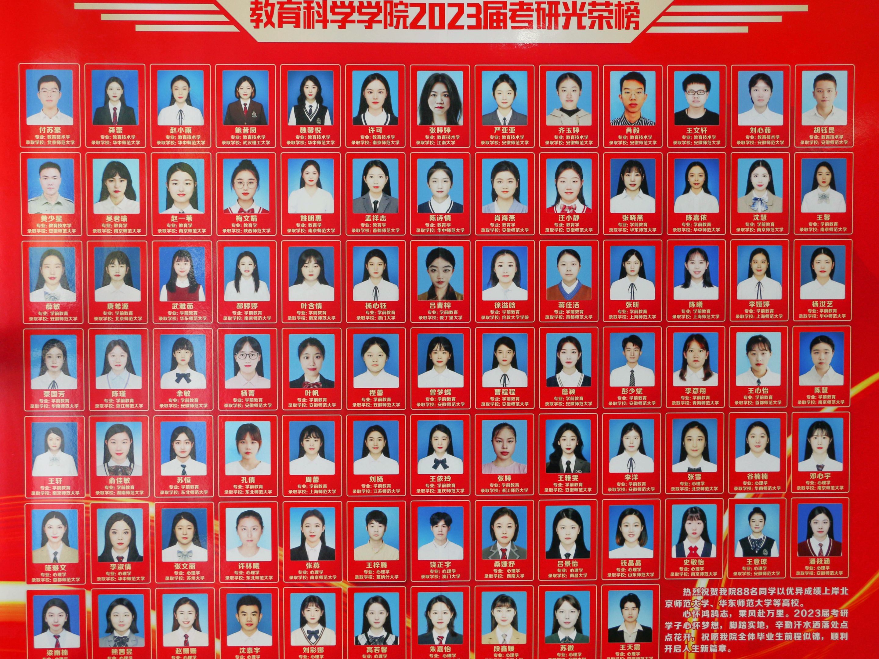 青春之我自强不息,先进个人展露风华。为发挥榜样引领作用,激发教科学子的进取精神,院团委对“教科之星”十佳大学生和保研、考研学子光荣榜进行了推文推送,并于田楼B座教科院一楼大厅展示了2023届考研光荣榜。推文具体介绍了十位“教科之星”的日常表现及获奖情况,他们德、智、体、美、劳全面发展,在道德示范与创新创业等方面各有所长;保研、考研学子成绩优异,获得多项荣誉,在推文中分享了自己的学习经验以及对学弟学妹们的未来寄语。