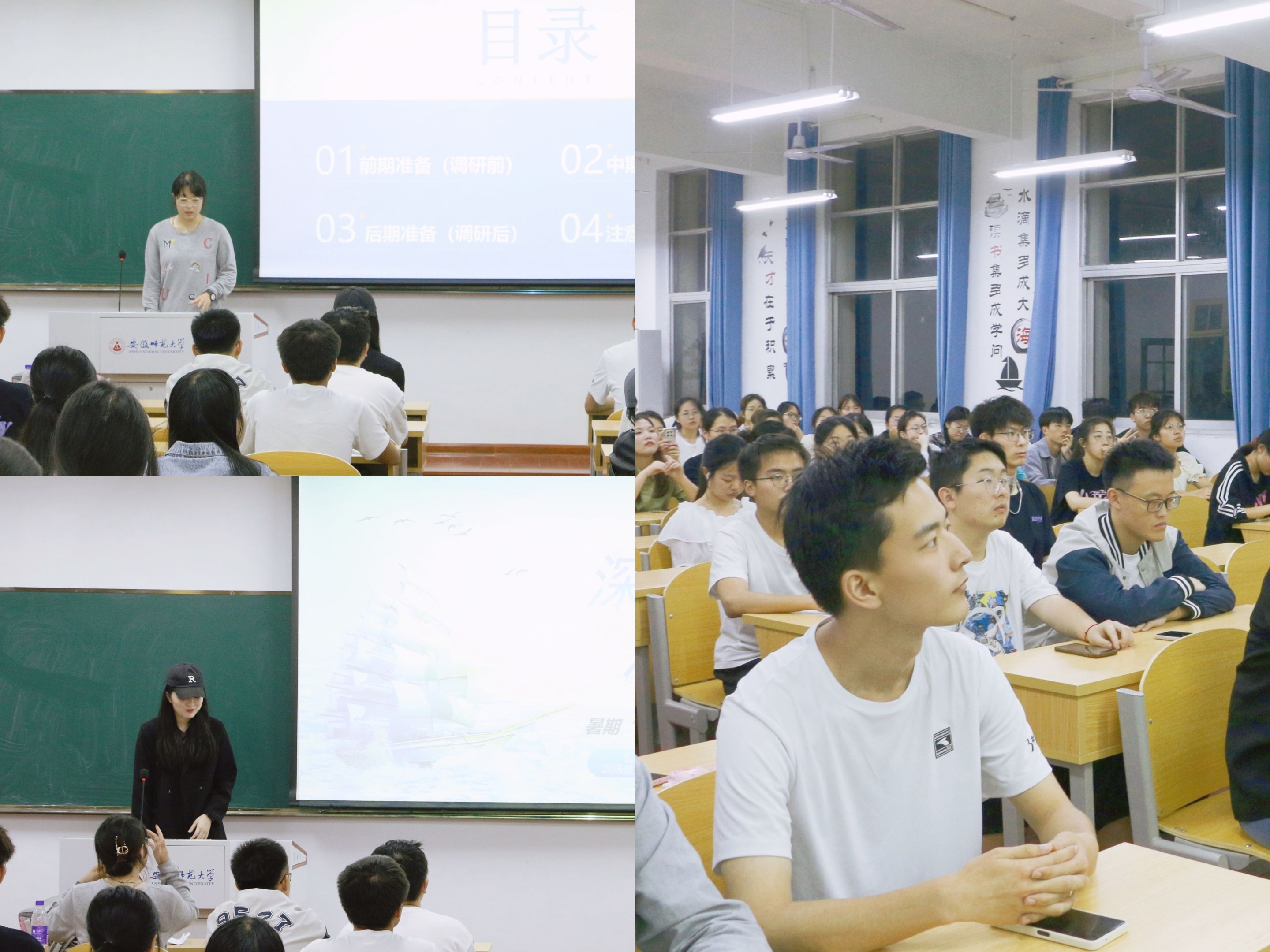 5月26日晚,学院于教学楼1503教室组织开展暑期社会实践调研培训。针对暑期社会实践队伍的调研工作,2020级学前教育专业董晶依据自身的调研经验,详细介绍了社会实践的调研过程与注意事项。2020级教育学专业谢雅雯以“深、实、细、准、效”为出发点,结合自身实际经历,全面分享自己撰写调研报告的经验与感悟。