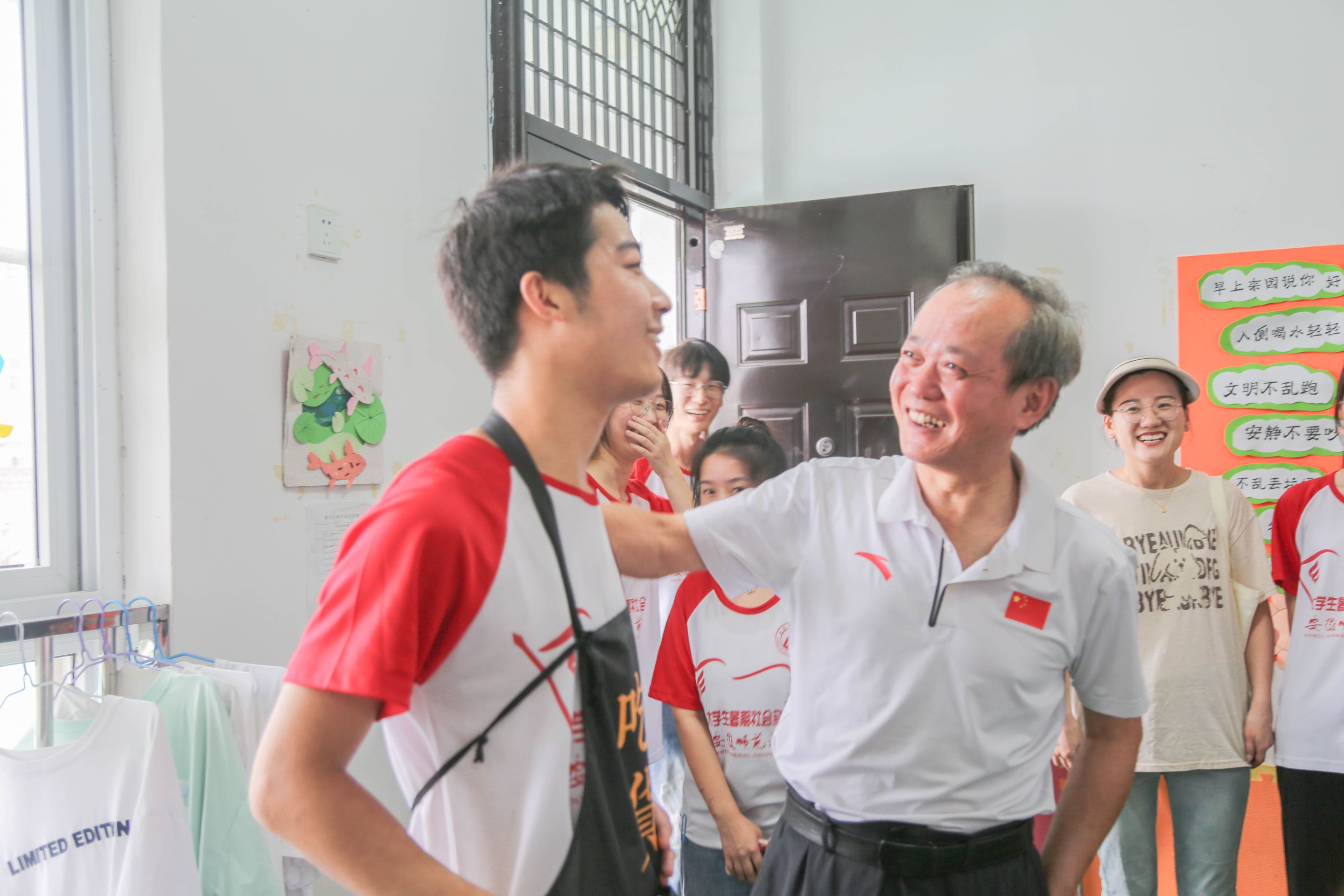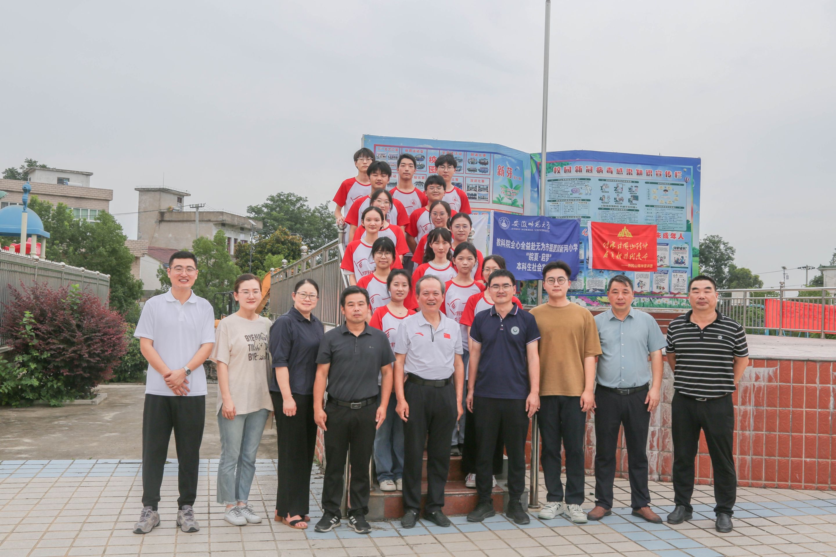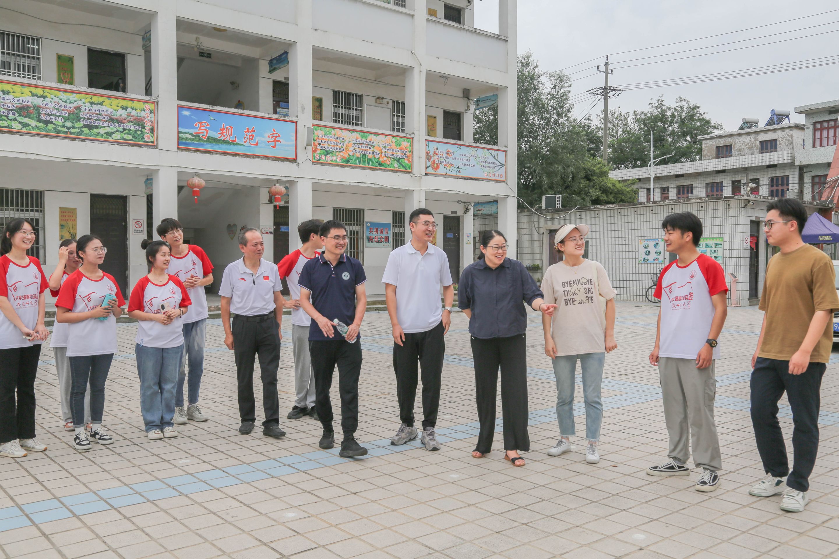7月13日上午,365英国上市官网教授、团队指导教师阮成武,院党委副书记杜凤,副院长韩建涛,学院教师肖龙,院团委书记张理强、辅导员赵茜一行人抵达无为市新河小学,对教科院全心全益赴无为市“皖夏·启梦”本科生实践团队进行走访慰问。福渡中心学校校长许先友,干事许圣军,新河小学校长张弢陪同慰问。