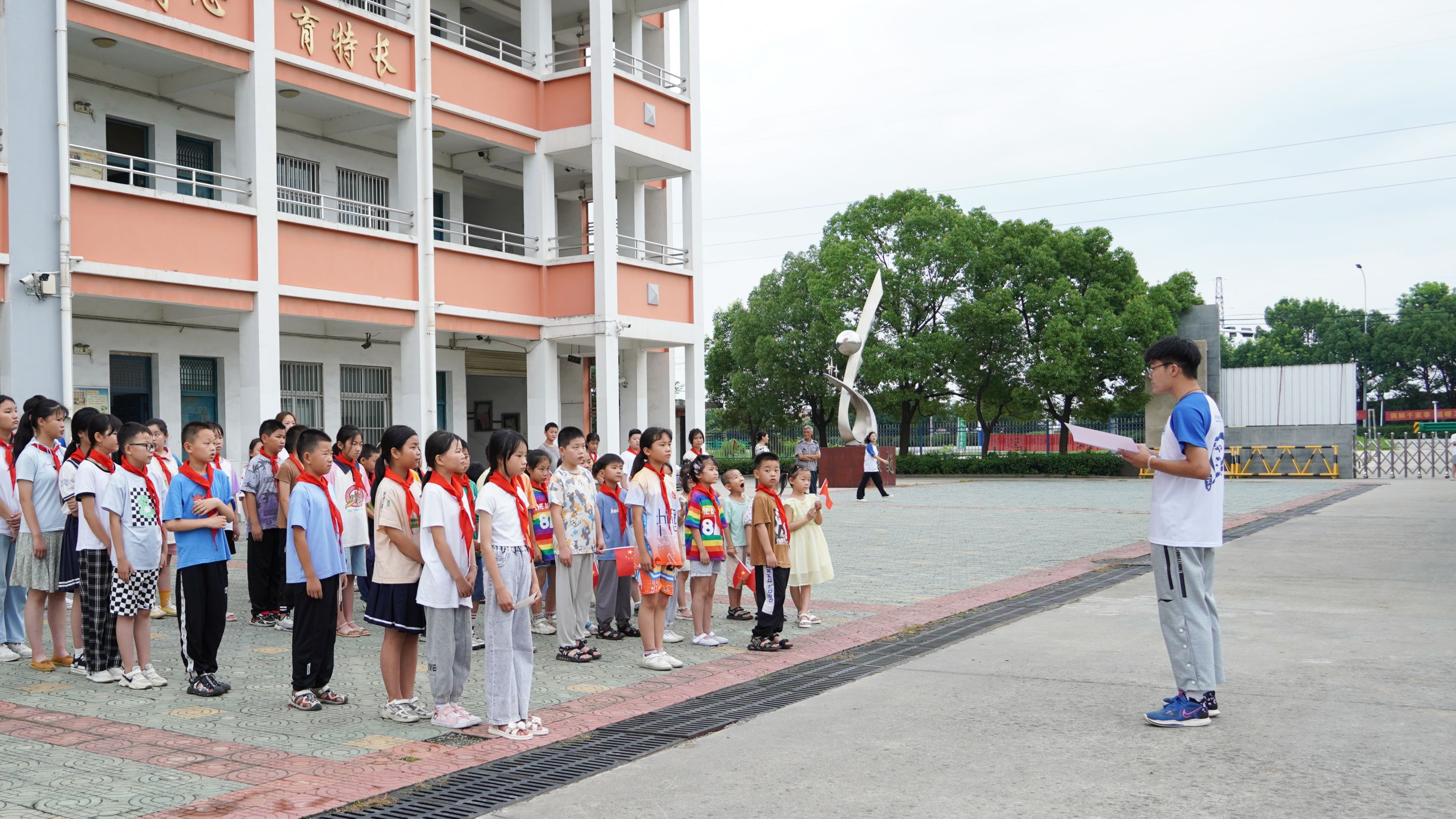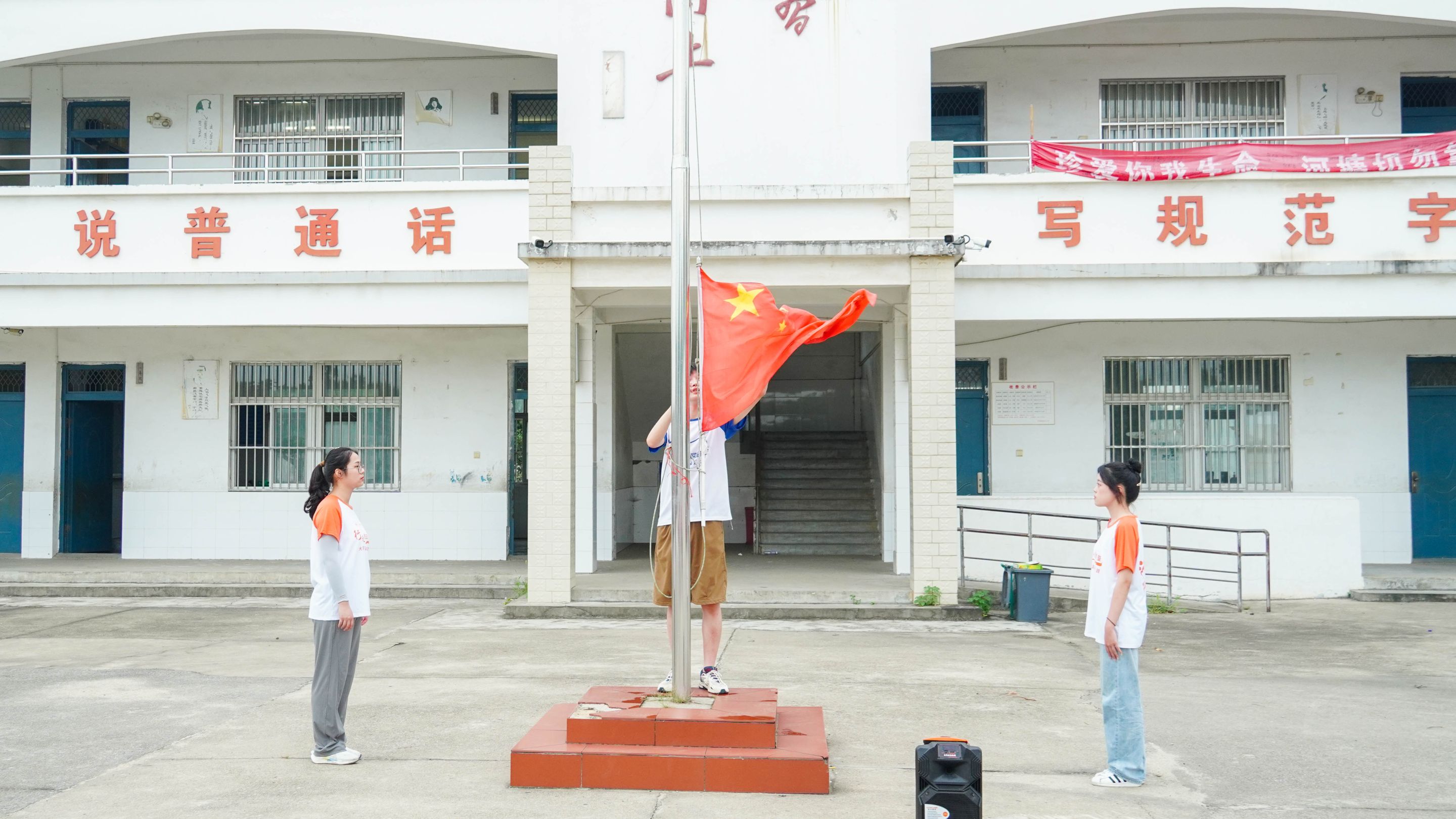 “全心全益”赴马鞍山和县志愿支教团队分别于和县历阳镇龙华小学、城南中心小学举行了升旗仪式。龙华小学得到了当地村委会的支持与帮助。上午8时,升旗仪式开始,各年级队伍在操场列队完毕。伴随着《出旗曲》旋律的响起,志愿者护旗手走向国旗台,在全体师生的注视下,国旗在庄严肃穆的国歌声中徐徐上升。所有少先队员佩戴红领巾,行队礼注视着飘扬的五星红旗,其他学生和团队队员们也都表情庄重地行注目礼。对一面五星红旗,澎湃的是一颗颗赤诚之心,每个人都怀着对祖国的无限热爱与崇高敬意。学生代表王语涵、志愿者代表李欣悦、谢家磊分别发言,呼吁大家要牢记历史,在学习和生活中不断坚持、不断奋斗。