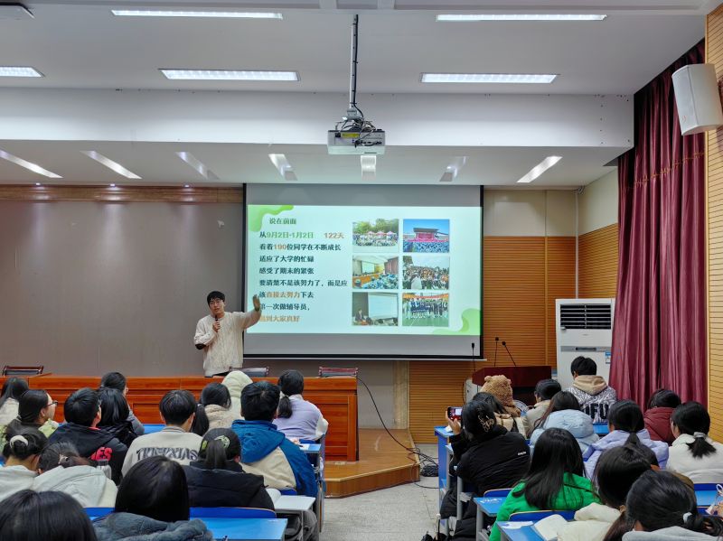 为贯彻落实学校《关于2024年寒假有关安排的通知》以及“大学生护航行动计划”,规范寒假离返校程序,引导2023级全体本科生合理安排假期生活。2023级辅导员金凤仙、刘玉瑾分别于12月31日、1月2日,在天门山校区行知楼105、图书馆报告厅召开了寒假离校主题班会,全体2023级本科生参与了本次会议。