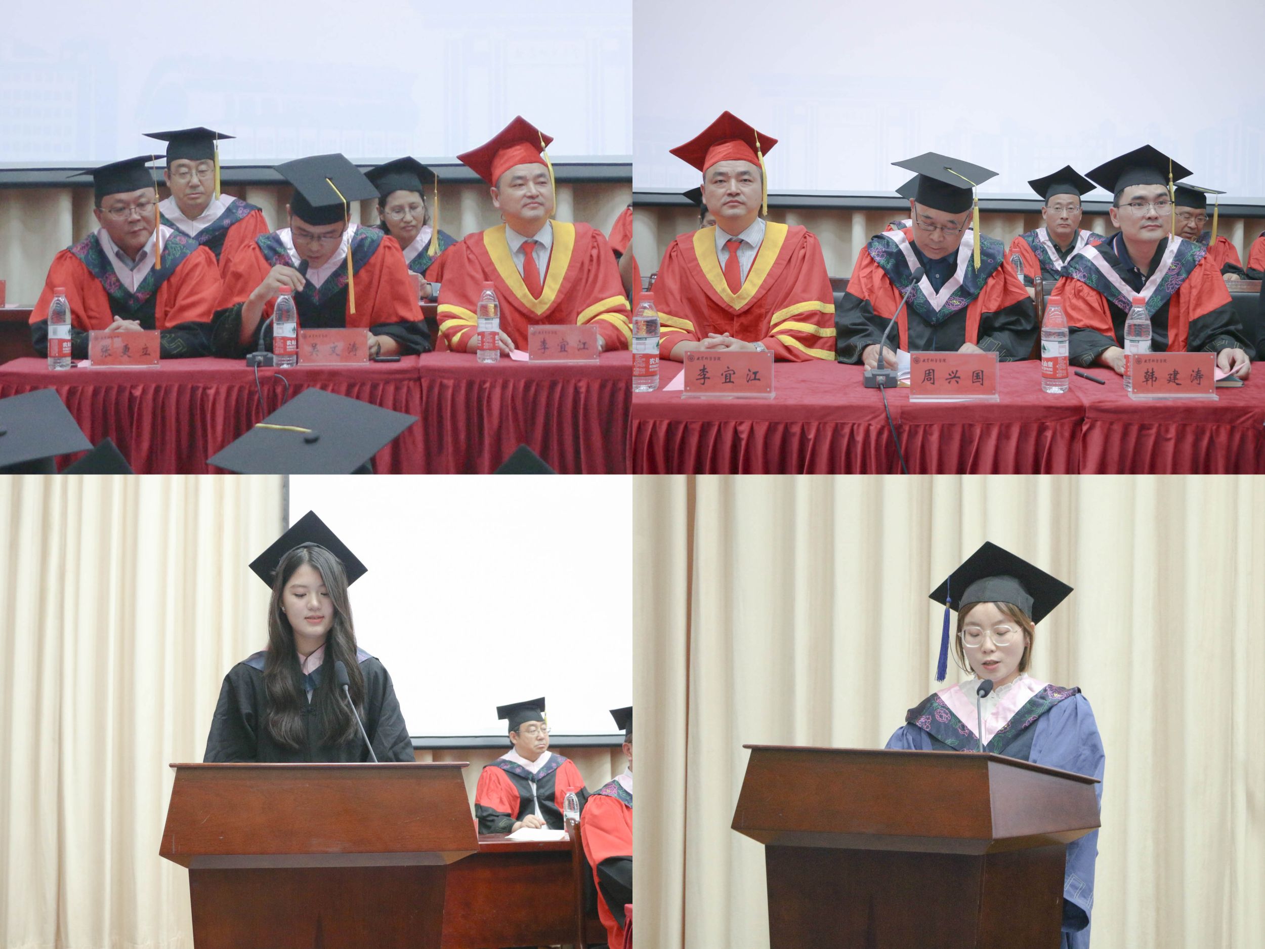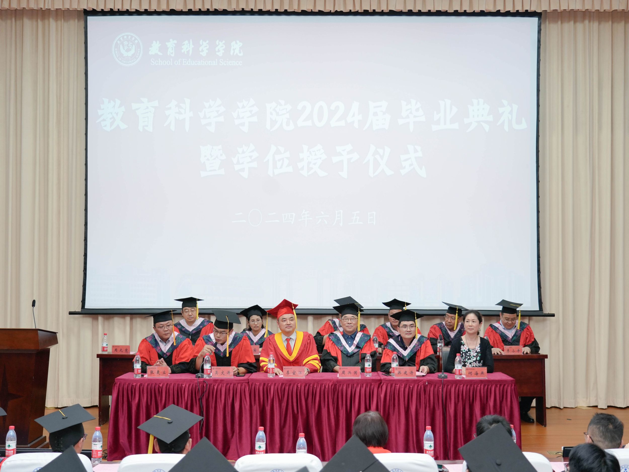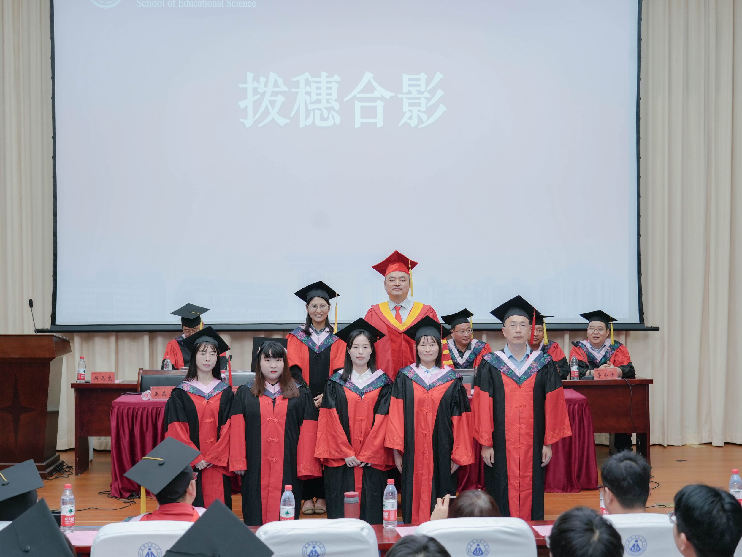 毕业典礼在庄严的国歌中拉开序幕。副院长韩建涛宣读了本科生、研究生拟授予学位的决定,决定授予艾瑞雪等6人教育学博士学位,授予王丽等59人教育学硕士学位,授予王璐等44人教育硕士学位,授予石金杰等263人教育学学士学位,授予曹颖等92人理学学士学位。教师代表周兴国教授勉励各位毕业生同学们保持成长的勇气,不断变换自己看待世界的视角;保持终身学习的态度,不断适应飞速发展的社会;保持生活的虔诚,承担起社会赋予的职责和义务,同时祝福各位同学前程似锦。本科毕业生代表谢雅雯同学,研究生毕业生代表王璐同学先后发言,他们深情回忆了在师大学习生活、奋斗成长的点点滴滴,感恩学校、学院、各位老师的倾囊相助,感激同学朝夕相处的情深义重,并衷心祝愿学校、学院蓬勃发展,勇攀高峰;祝愿各位毕业生沐光而行,鹏程万里。