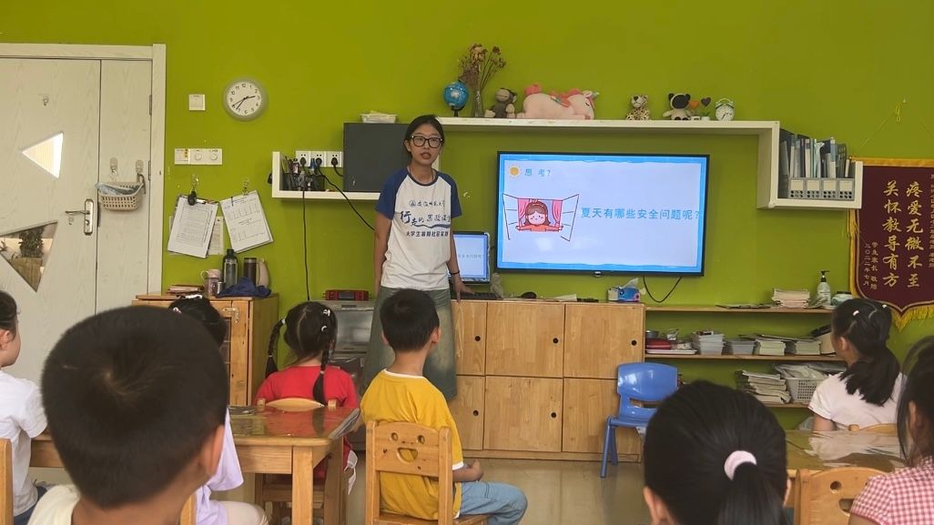 夏季是安全问题的高发季节,极端天气、饮食健康、溺水事件、炎热中暑等问题频发。幼儿的认知水平较低,不具备自我保护能力,导致各种安全事故发生,幼儿园应当培养幼儿的自我保护意识,而这需要以培养幼儿的安全意识为起点。在课程开始之前,实践团队队员积极收集夏季安全相关材料,亲身掌握相关知识,贴合幼儿生活经验与认识能力,将安全教育与自身学前专业素养相结合,制作符合幼儿身心发展的特色课程教案与辅助教具、多媒体。这不仅使此次安全教育主题课程更加丰富,也使得学前教育专业的学子们提高了自身实践能力与专业素养。