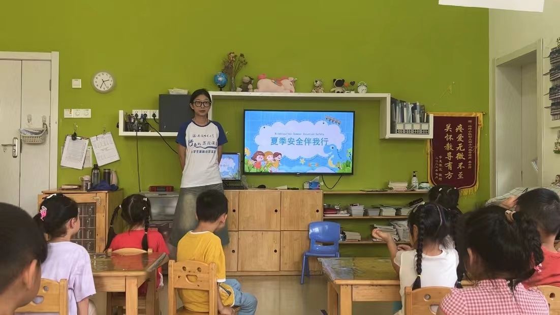 7月10日下午,365英国上市官网全心全益赴芜湖市沿河小区幼儿园“五彩乐迪”本科生社会实践团队队员郭雯荻及范刘云在芜湖市沿河小区幼儿园大二班进行了《夏季安全伴我行》幼儿安全教育主题课程。