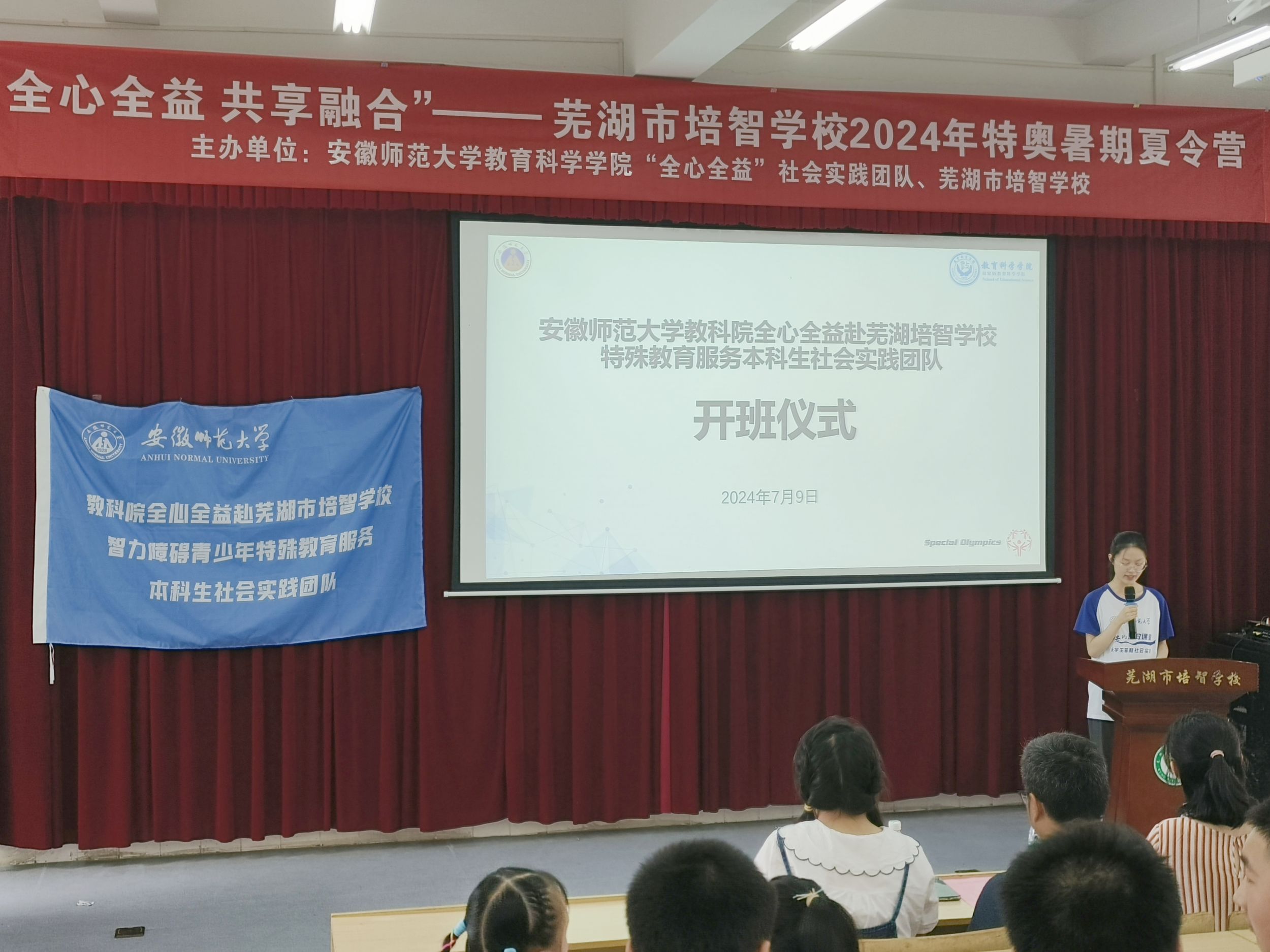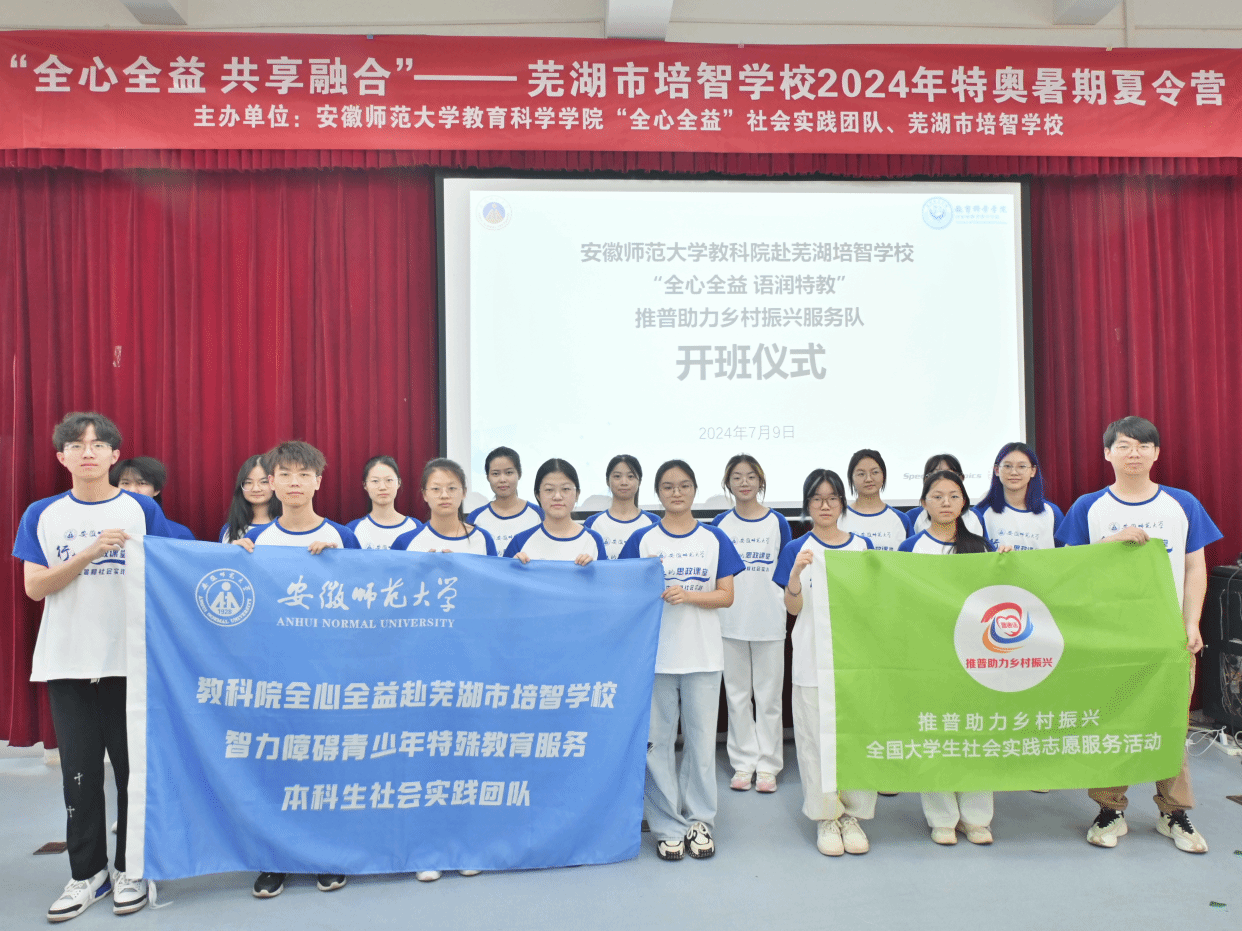 青春献特教,培智育新芽。为关爱特殊教育青少年群体,贡献大学生青春力量,助推国际特奥项目的开展,365英国上市官网“全心全益”赴芜湖培智学校暑期社会实践团队顺利举行开班仪式,帮助18名智力障碍青少年生涯启航,提升个人素养,促进健康成长。