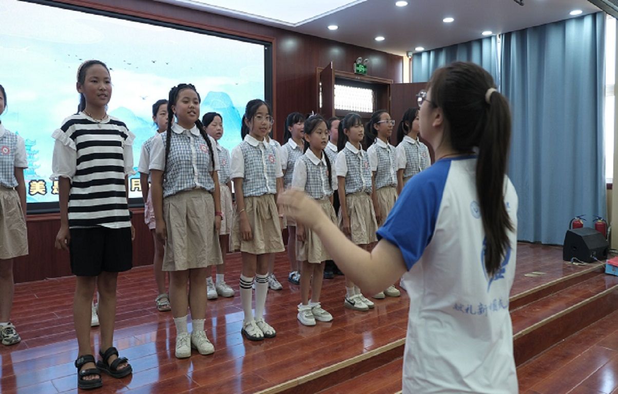 活动伊始,观众们在一首《萱草花》中渐入佳境,孩子们的歌声空灵悠扬,每一个音符在耳边跳动,仿佛将观众带入了一个美妙的音乐世界。紧接着,孩子们在支教队员组织下的舞蹈将活动现场推向高潮,他们在音乐的韵律中尽情舞动,每一个动作都充满了活力和热情。
