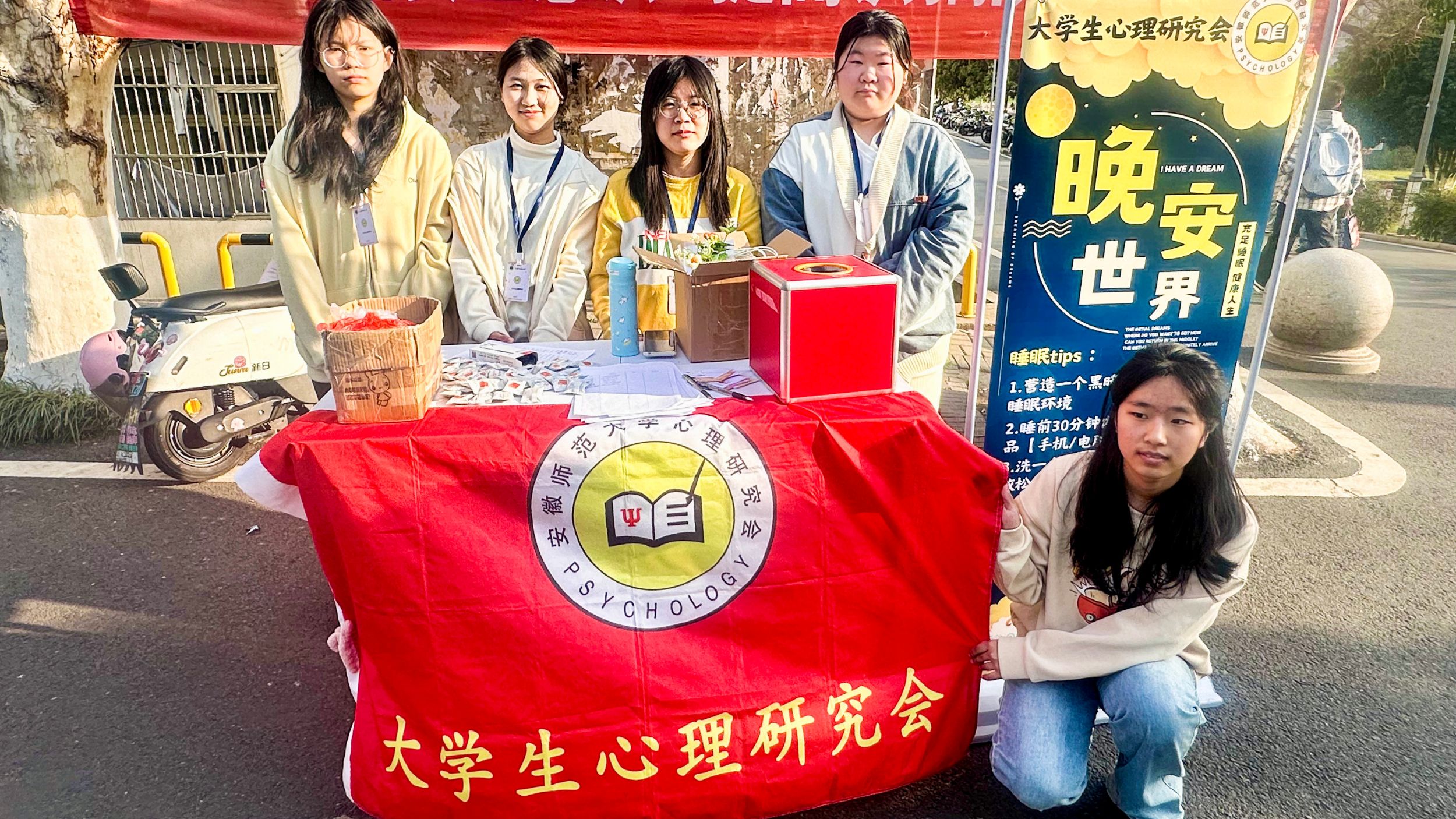 3月20日至3月21日,“晚安短信”活动将本次“321睡眠日”活动推向了高潮。活动当天,大学生心理研究会在食堂广场摆设展台,吸引了两百多名同学参与其中,大家在便签纸上写下昵称和手机号,投入纸箱,随后抽取其他同学的联系方式,在晚上向抽取到的号码发送晚安短信送上好梦祝福,充满了温暖与关怀。大学生心理研究会的工作人员也为所有报名活动的同学发送了官方短信,其中包含助眠小贴士,为同学们送去了一份特别的问候。