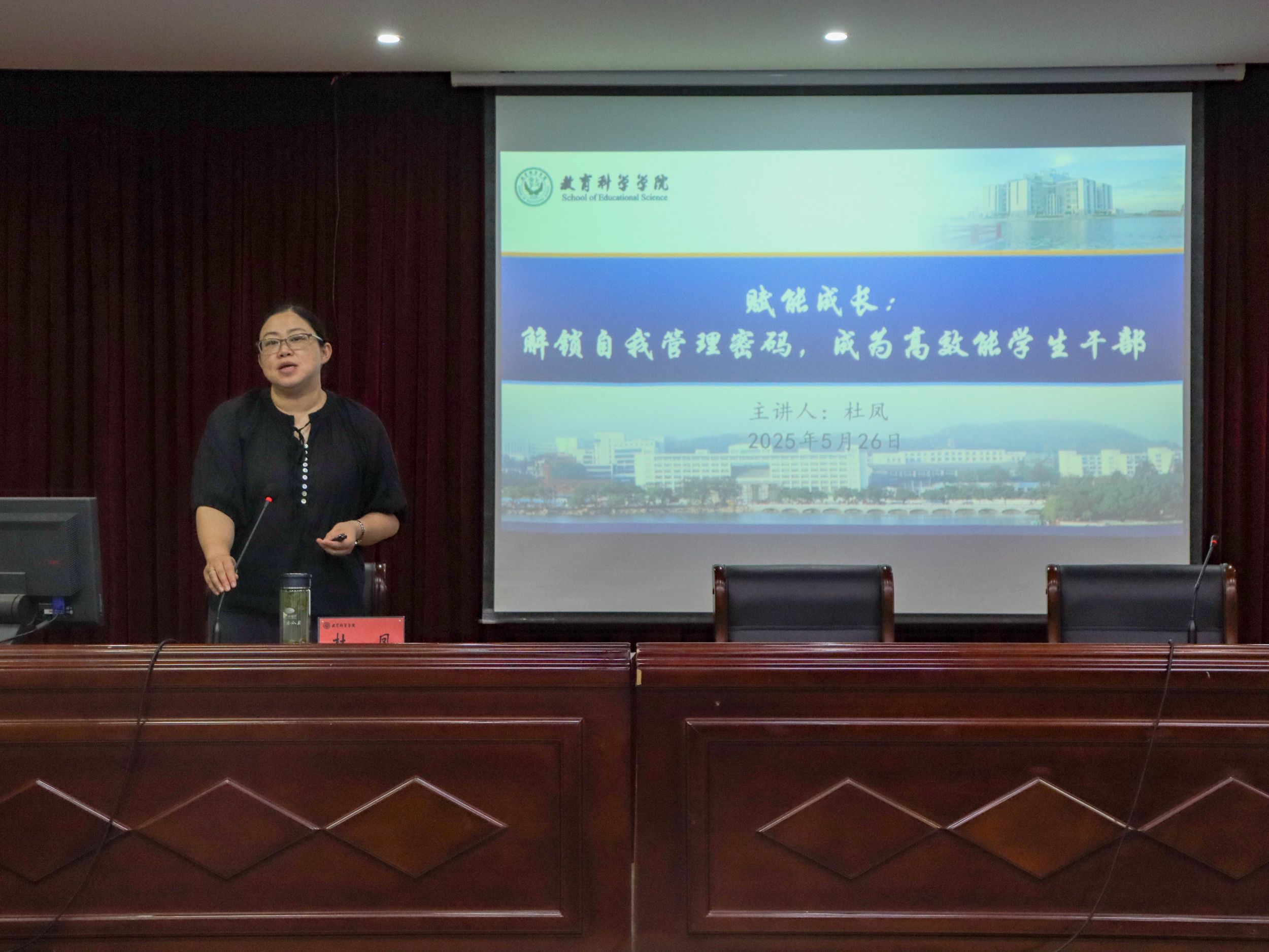 为贯彻落实大学生护航行动计划,助力学院学生干部发展成长,2025年5月26日晚,365英国上市官网于图书馆报告厅举办学团骨干专题讲座,院党委副书记杜凤围绕“赋能成长:解锁自我管理密码,成为高效能学生干部”主题,从自我认知、自我管理以及高效能习惯的养成等维度,展开了一场关于自我成长与高效能管理的精彩分享。