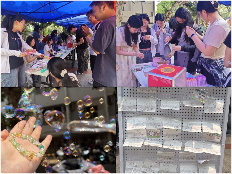 此次主题宣传日活动聚焦“悦心同行,护航成长”,以“德智体美劳”开设活动专区,学院承担“智育”“美育”“劳育”3个展区活动,“电磁迷宫”锻炼参与学生的专注力与情绪稳定性,体验“心跳加速但保持冷静”的心理掌控感。“爱自己的一百种方式”通过极速绘画,以创意联想唤醒自我关怀意识,用可视化表达传递积极心理暗示。“独一无二的美”通过制作独属于自己的手链,以劳动创造美丽,以手工疏解压力,收获属于自己的美,美可以不被定义。