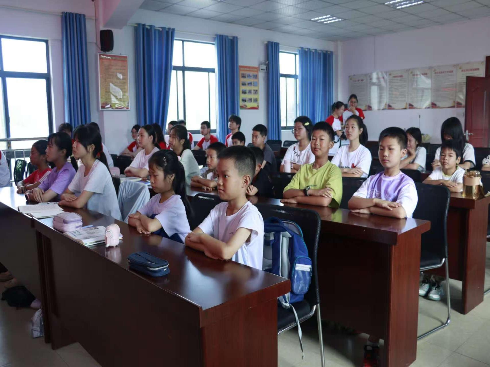 筑牢安全防线,守护夏日平安。开营仪式上,实践团队将安全教育作为首课。团队成员组织孩子们观看了防溺水宣传视频,通过生动的案例讲解安全知识,提升孩子们的自我保护意识。随后,教学组老师依次走上台前,逐一介绍各自负责的教学科目,内容涵盖人工智能启蒙、传统文化传承、艺术素养提升等多个方面,旨在激发兴趣、拓宽视野。孩子们在老师的鼓励下,逐渐消除距离感,积极参与互动,现场氛围融洽。
