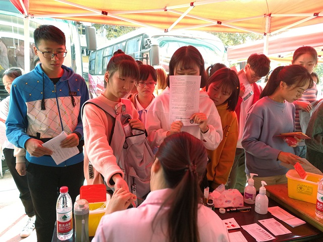 本网讯(教科院 高凡)以我青春热血,投身献血公益。为增强学生们的社会服务意识,提高无私奉献精神,我院学生会积极开展无偿献血宣传工作,并于11月1号带领同学们在食堂门口参加献血活动。