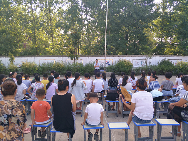 节目中间还插入了抢凳子的游戏,同学们的热情高涨,过程中充满了欢声笑语。界首市新马集中心校高全善校长受邀来观看此次汇演并做了讲话。高校长首先对这次参与暑期实践团队表示欢迎和感谢,队员们的阳光活力带给同学们积极的影响同时鼓励同学们努力前行。通过短暂的相处,新马集奉天寨中心小学同学们和队员之间不知不觉中建立起了深深的情感。