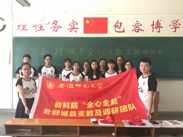 本网讯(教科院 苏晓月)舒城县作为六安市的贫困县区,经济落后,留守儿童众多。为贯彻党的十九大精神,安徽师范大学教科院开展了本次“全心全益”赴六安市舒城县爱心支教活动,力求为落后农村地区教育奉献出一份力量。7月28日, 以教研为主要特色的赴舒城县爱心支教及调研社会实践活动顺利结束。