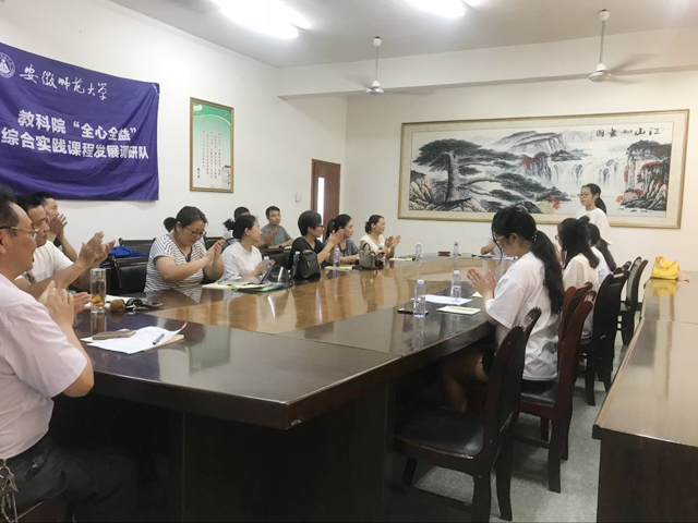为能够更多地了解综合实践活动课程在本地区的现实发展状况,7月16日,霍邱小分队成员同新店镇初级中学校领导及部分优秀教师召开座谈会。