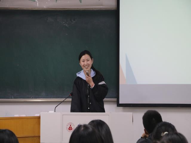 左孟杰同学分别从学习、生活和社会实践三个方面向大家介绍自己的本科经历。学习方面,左孟杰认为一定要对自己的专业有清晰的认识,培养专业学习的兴趣,努力实现课堂学习和课外学习,只有多思考,多运用,才能真正掌握书本上的知识。生活方面,左孟杰提倡大家多出游,拓宽自己的视野,在与外界交往的过程中明确自己目标。社会实践方面,她鼓励大家参与暑期社会实践,锻炼能力,积累经验。