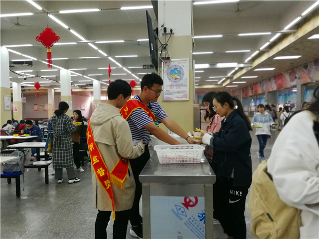 志愿活动方面,针对食堂内是否文明就餐等问题,由院学生会实践部牵头,组织相关志愿者在食堂内开展宣传活动。在倡导光盘行为的文明准则时,志愿者发现部分同学将饭渍放在餐桌上不清理,以及存在剩饭过多造成浪费的问题。食堂工作人员表示,他们对学生忽视公共卫生、浪费食物等行为感到无奈,并希望同学们能够适量用餐,减少浪费,注意公共卫生,养成勤俭节约的好习惯。