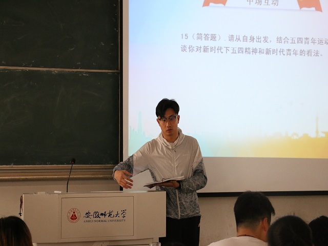 决赛分为上下半场,八位参赛选手准备充分,结合个人创作的PPT作品,畅谈对五四精神的思悟和所做作品的设计思路。制作精巧的PPT演示与发人深省的主题演讲让在场观众受益匪浅。比赛的中场互动环节,主持人组织在场观众进行五四知识问答,现场气氛活跃,同学踊跃参与。经过紧张有序的演讲环节后,各评委从作品主题、模板设计、演讲内容等方面进行打分,评选出一二三等奖,并为选手颁奖。比赛最后,程啸老师就各选手的作品进行认真深刻的点评,向同学们提出期望和要求。