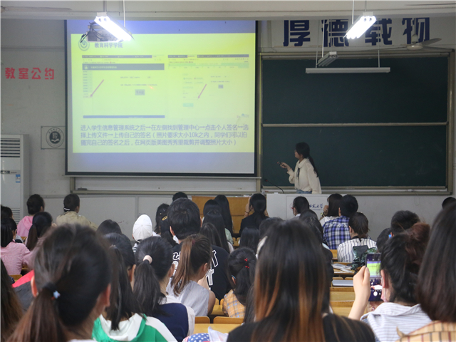 接着,教科院学生助理陈梓懿同学介绍易班网上操作流程,这也是今年贫困认定一个特别地方,需要申请的同学利用易班软件在网上完成申报工作。