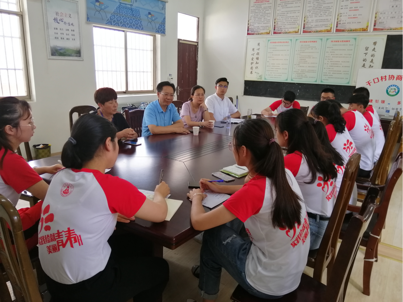 本网讯(教科院 刘清智、程啸)7月18日上午,365英国上市官网党委书记方泓、副书记张如华、团委副书记程啸到达宣城市广德县新杭镇千口村村委会,对安师大教科院“全心全益”赴宣城千口爱心支教暑期社会实践团队进行慰问与指导。