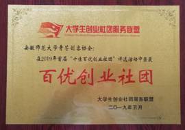 本网讯(教科院 陶佳/杨滨/朱丹丹)2019年5月14日,由大学生创业社团服务联盟主办的全国首届“十佳百优创业社团”评选活动在江西共青城落下帷幕。我院教育技术学专业创办的“青芒创客协会”在29个省、市、自治区的456所高校创业社团中脱颖而出,喜获2019年首届全国“百优创业社团”荣誉称号。