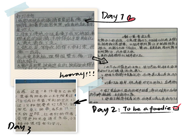 第一期阅读活动中,小学组阅读的是《小王子》,初中组阅读的是《童年》小朋友边阅读边摘抄,并记录读书心得。小学组的黄晨希同学写道:“《小王子》这本书记录的是作者自身的感受,里面阳光的小王子,搜索过好几个星球,让我印象最深刻的是点灯人,他每过一分钟就要开灯又熄灯,看似这些是无意义的事,却没有去找另一个星球,让作者也更加珍惜阳光与生命,小王子的精神值得我们学习