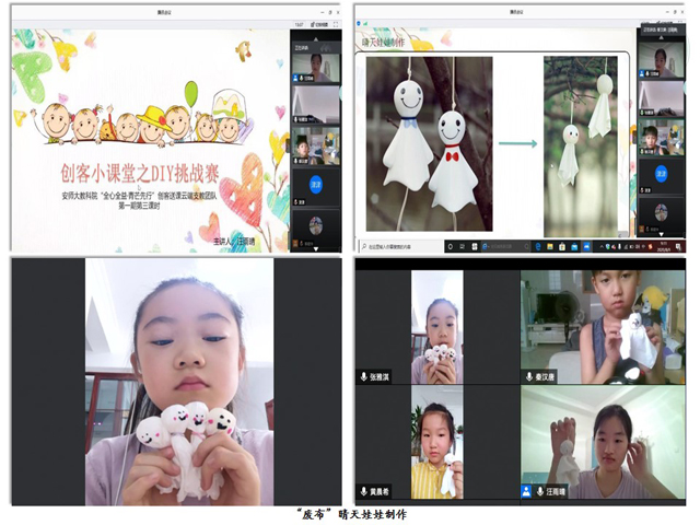 8月8日上午,1-4年级的小学生们在志愿者和家长的协助下进入网络课堂,志愿者准备的“会吃鸡蛋的瓶子”、“大力士—纸”和“水制放大镜”等等课堂小实验引起了小朋友们的兴趣。活动过程中,小朋友们积极踊跃地回答问题。在“会吃鸡蛋的瓶子”实验中,志愿者首先利用已准备好的材料亲自演示了一遍实验,接着在家长协助下,小朋友们拿出准备好的塑料瓶、热水、鸡蛋动手实验,志愿者和助教分工协调关注小朋友们的实验情况,确保每位小朋友们都能参与进来。