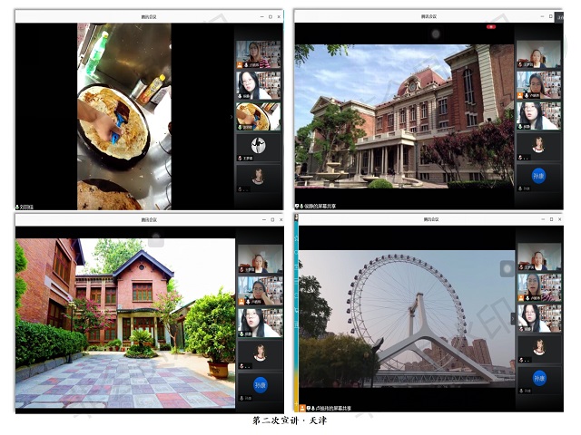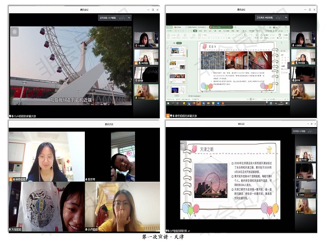 第二次宣讲的地点仍为天津,对象是一位来自贫困户的初一男生。确保防疫安全措施到位的情况下居住在天津的刘羽佳队员走出家门,来到了天津大街,以实地直播的方式为学生展示极具烟火气的真实天津街头另外两位宣讲者——侯静和卢皓玮同学通过视频讲解带领学生“云游”了天津五大道上的各国风情建筑。 学生对于房屋建造主动提出了疑问并同团队成员一起讨论建筑细节,宣讲氛围和谐欢快。宣讲结束后,该同学表示自己有机会一定要亲脚踏上天津的土地,去探索更多有关天津的故事。宣讲不仅仅是展示了一座城市的风貌,更是在学生心里播种下一颗向往和探索的种子。